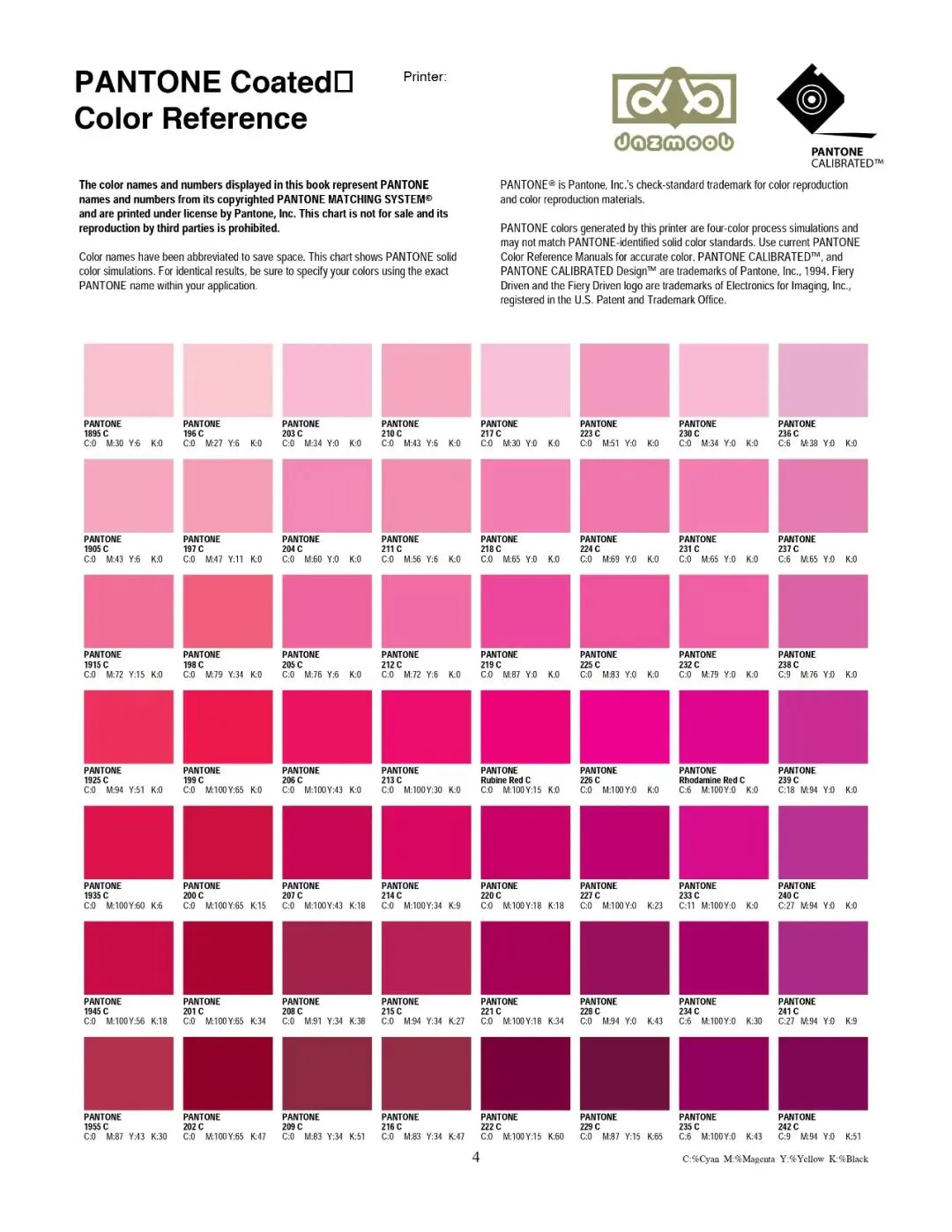 我们一般可以根据数字后面的字母来判断色号的种类。C=光面铜版纸 U=哑面书纸 TPX=纺织类纸版 TC=棉布版色卡等等