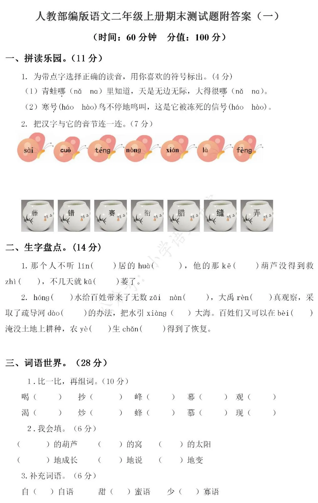 小学语文研究一直致力于为各位家长和老师提供优质的语文学习资源。今天给大家分享:部编版语文1-6年级上册精选期末试卷105套。这些试卷都有参考答案,下载后可直接打印,非常适合家长/老师给孩子进行查漏补缺,巩固知识点,备战期末考!