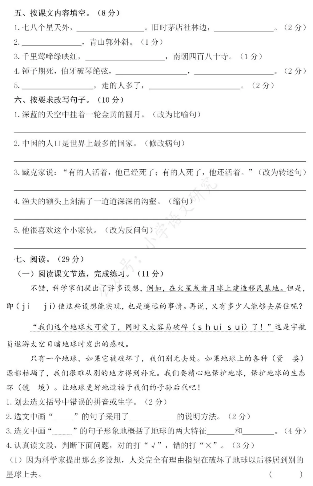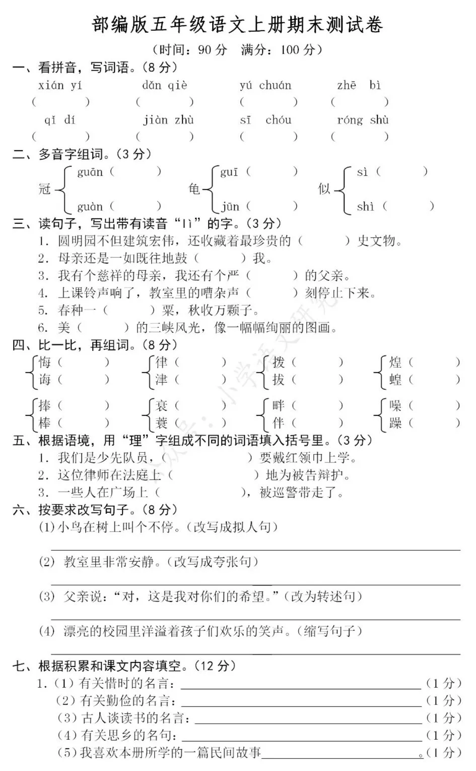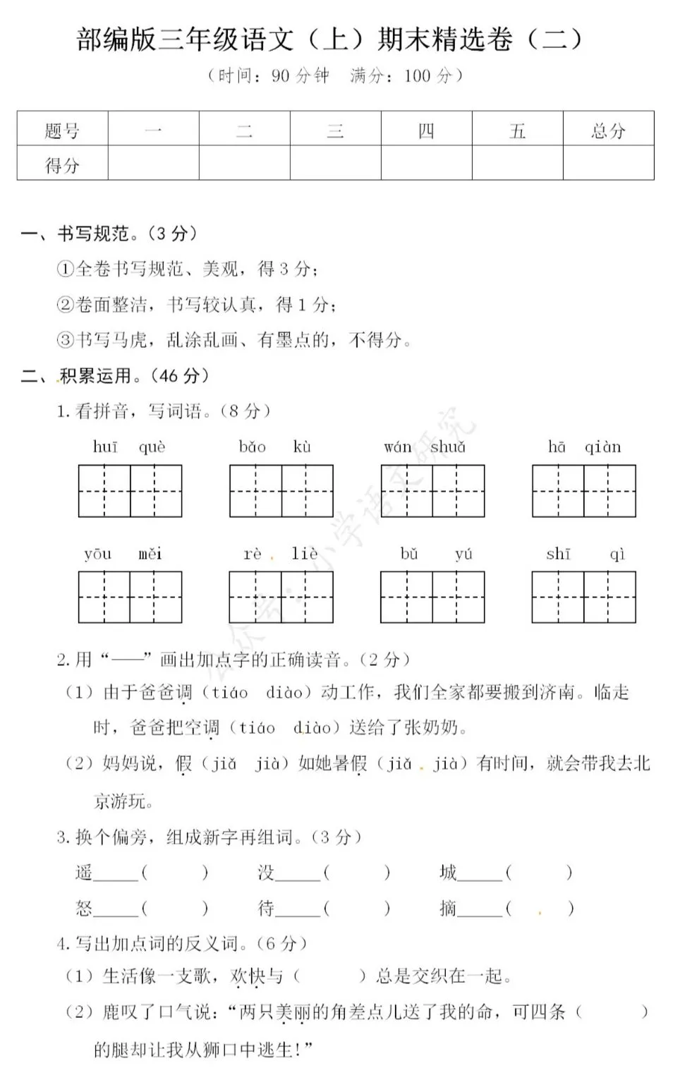 部编版语文1-6年级(上)精选期末试卷105套(含答案)丨可打印