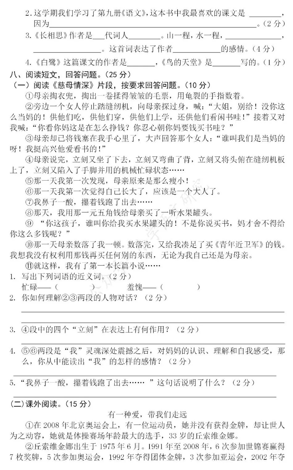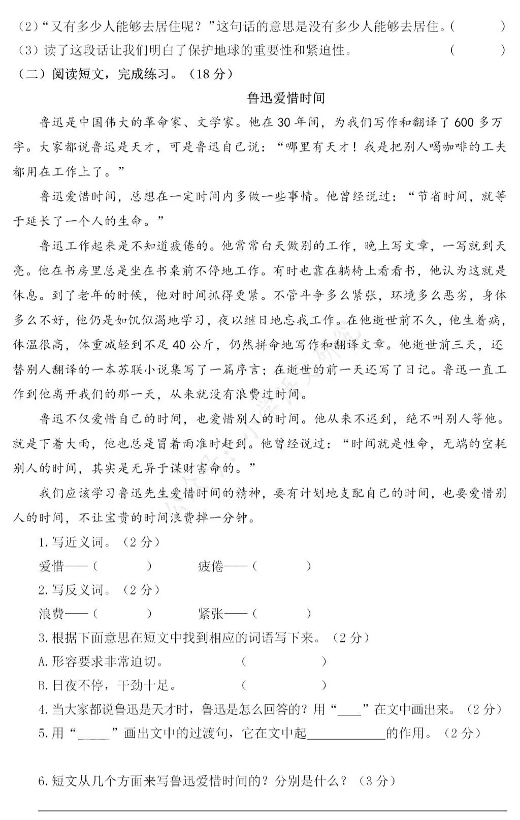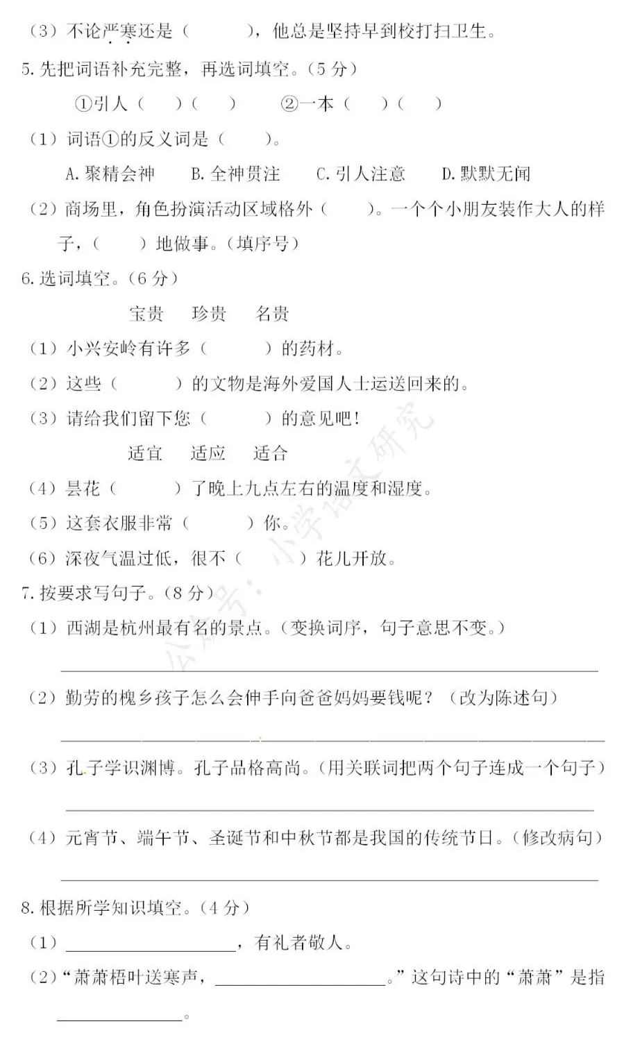 部编版语文1-6年级(上)精选期末试卷105套(含答案)丨可打印