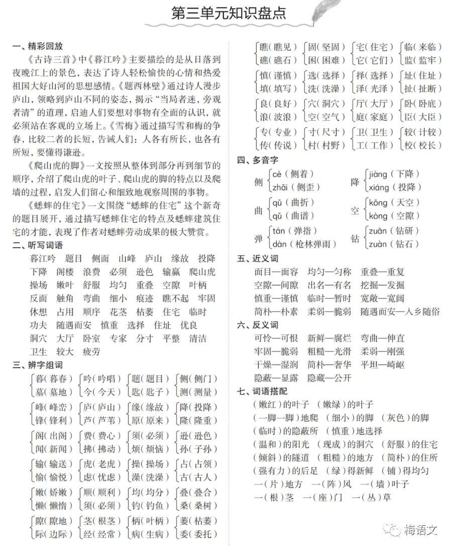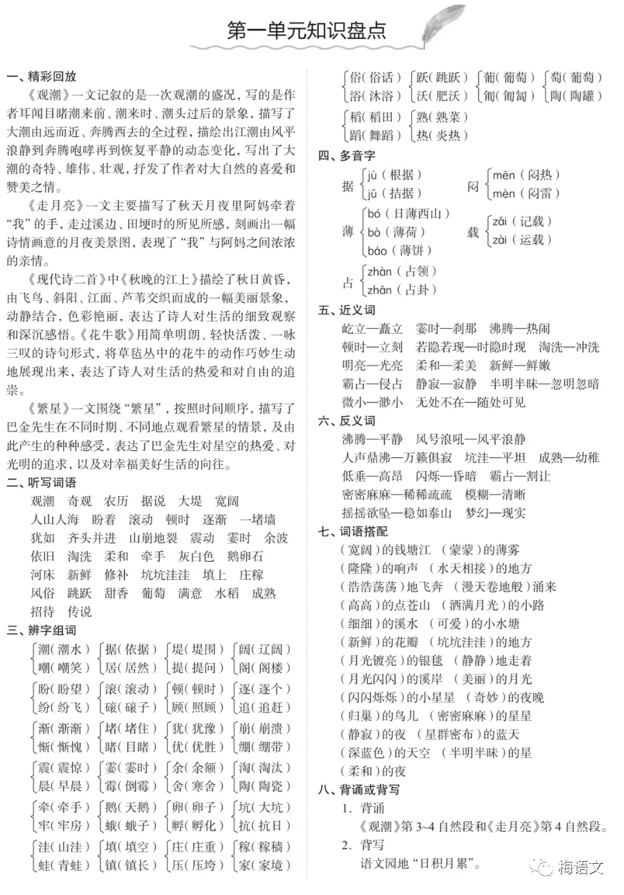 距离期中考试不远啦!梅老师给大家整理了统(部)编版四年级语文上册期中复习知识要点(课文第1~4单元),总共有两版,各位家长可以打印给孩子期中复!
