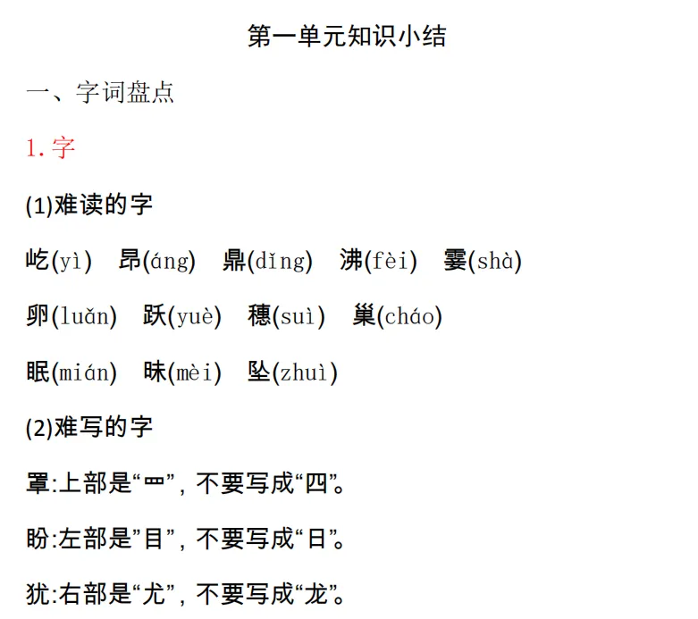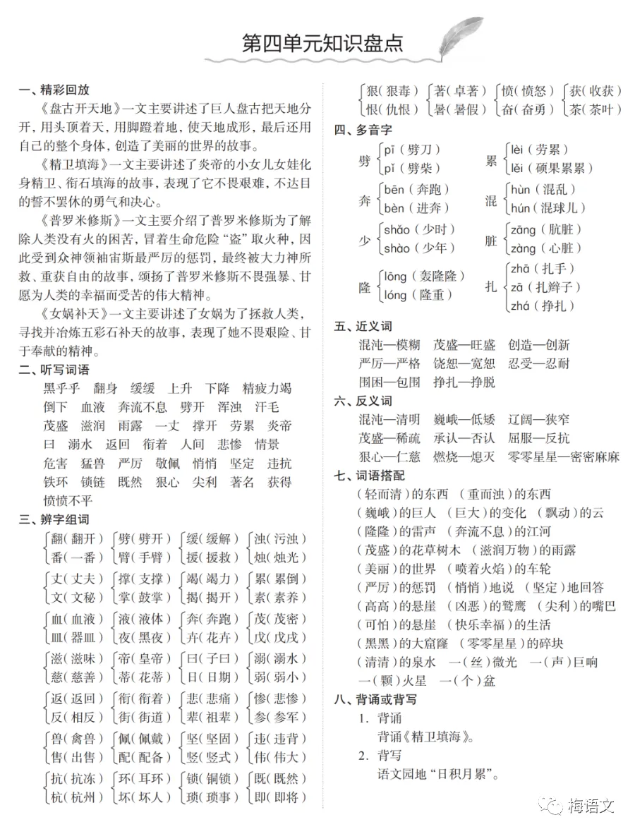 统编版语文四年级上册期中复习知识点汇总丨可打印