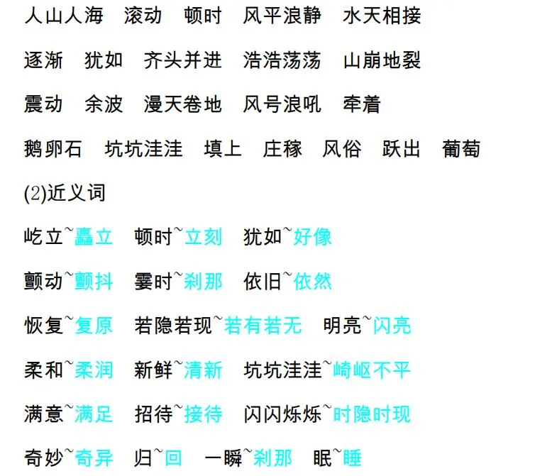 混沌~浑浊 黑乎乎~黑漆漆 缓缓~慢慢