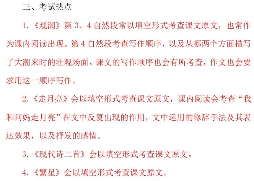 1.《盘古开天地》会以课内阅读形式考查对课文内容的理解和从盘古身上学到的精神。也会考查排比的修辞手法及其效果。