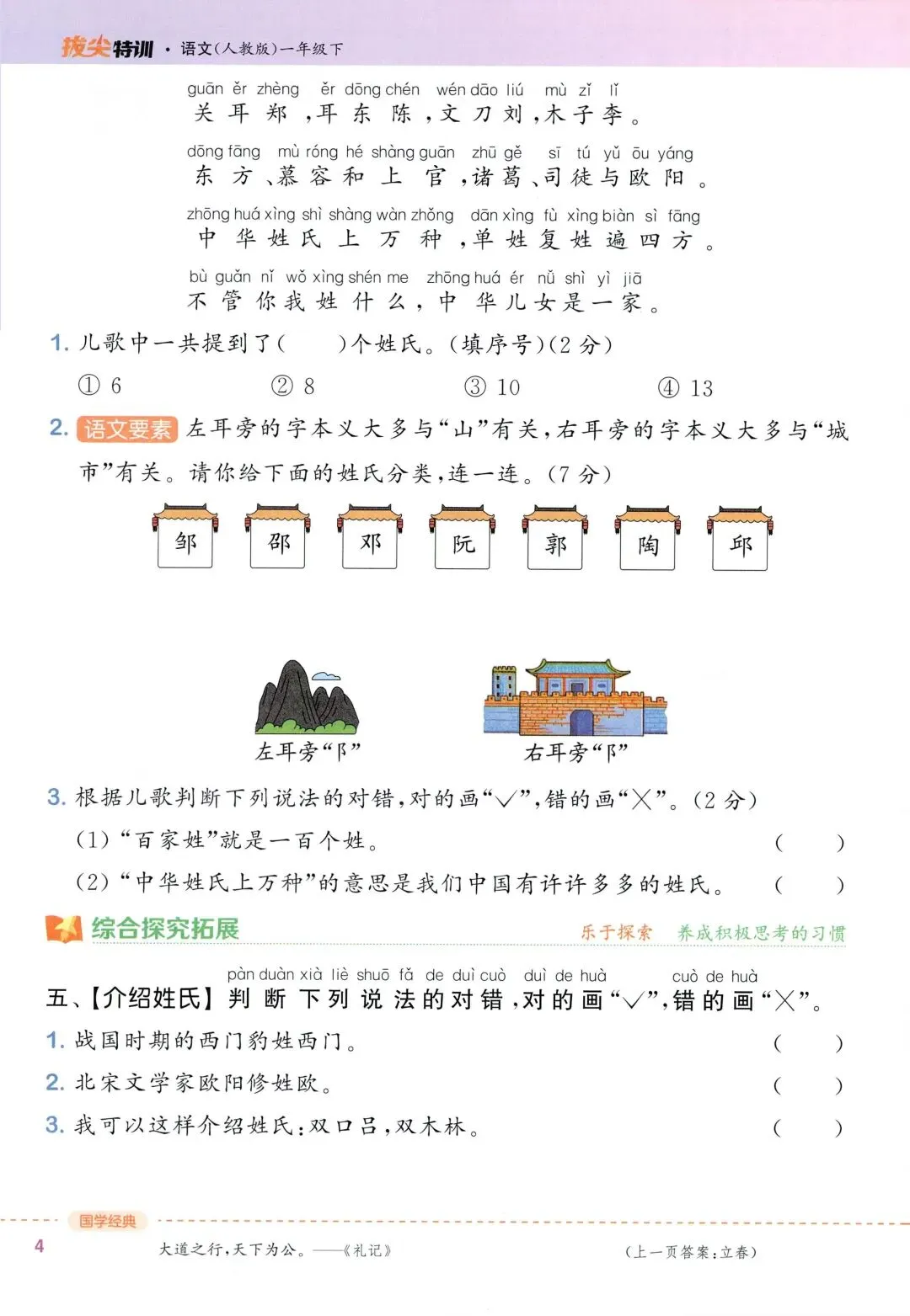 【语文教辅】26春一下语文拔尖特训电子版可打印