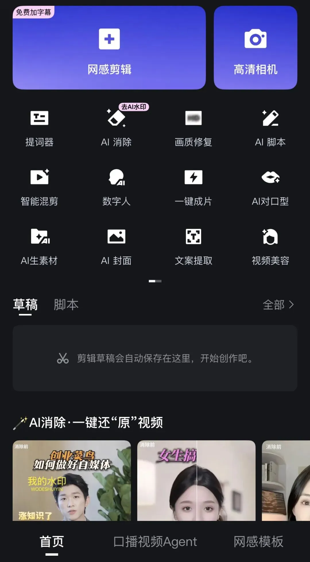 一键智能剪辑与网感包装,快速出片