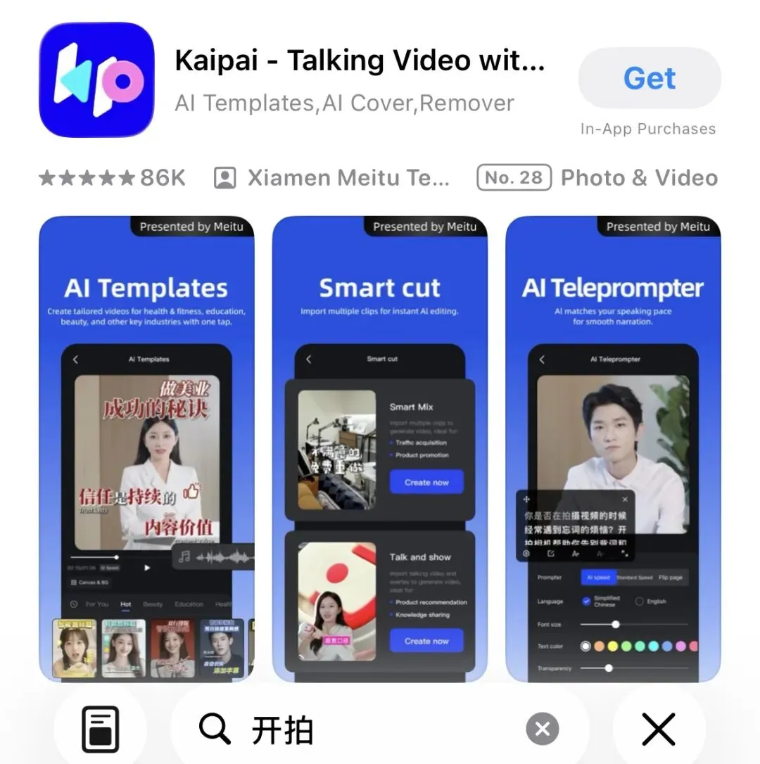 这款APP就是开拍。定位清晰、场景聚焦的AI口播视频创作工具,以“低门槛、高效率、全流程”为核心优势,精准解决自媒体人与中小商家的创作痛点,把复杂视频制作简化为几步操作。
