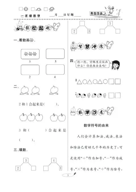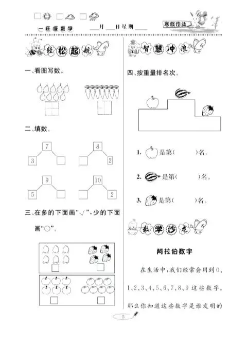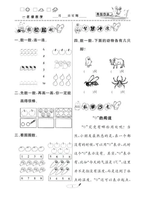 寒假作业·快乐假期一年级数学青岛版.pdf| 高清小学资料免费下载
