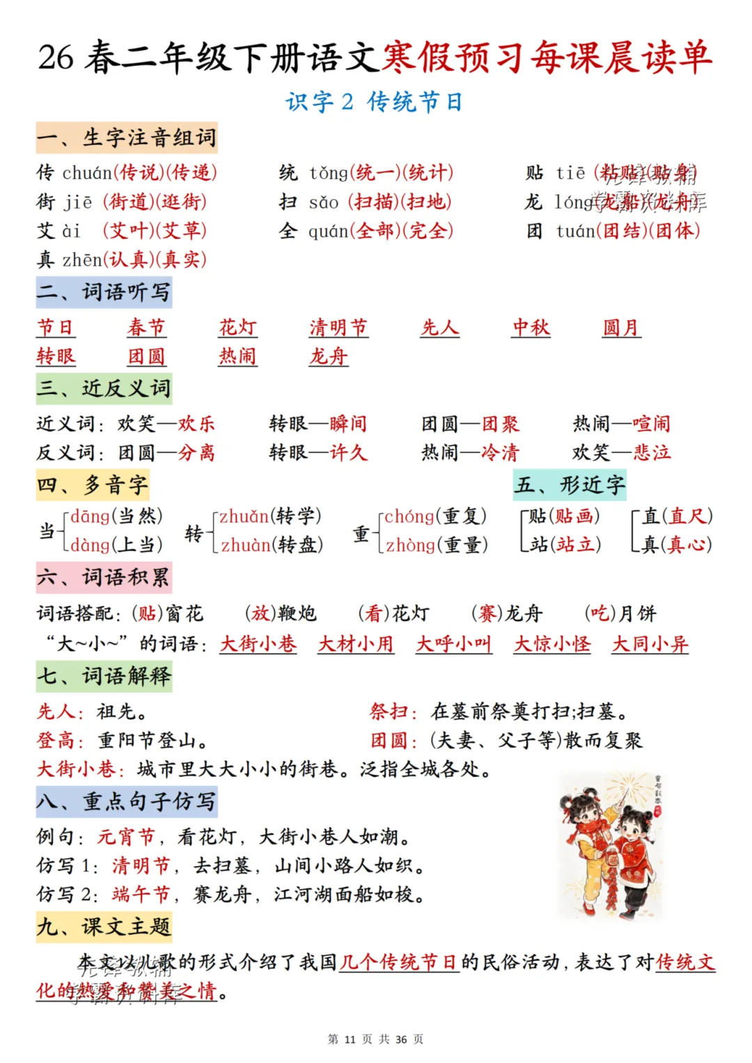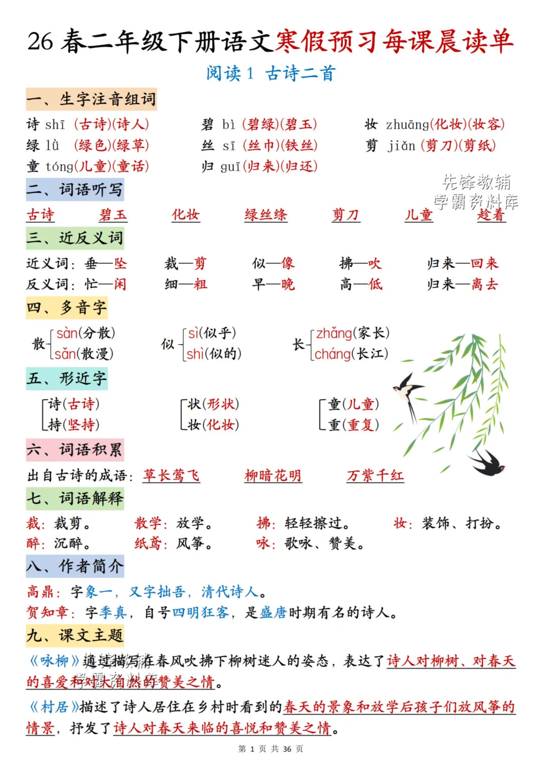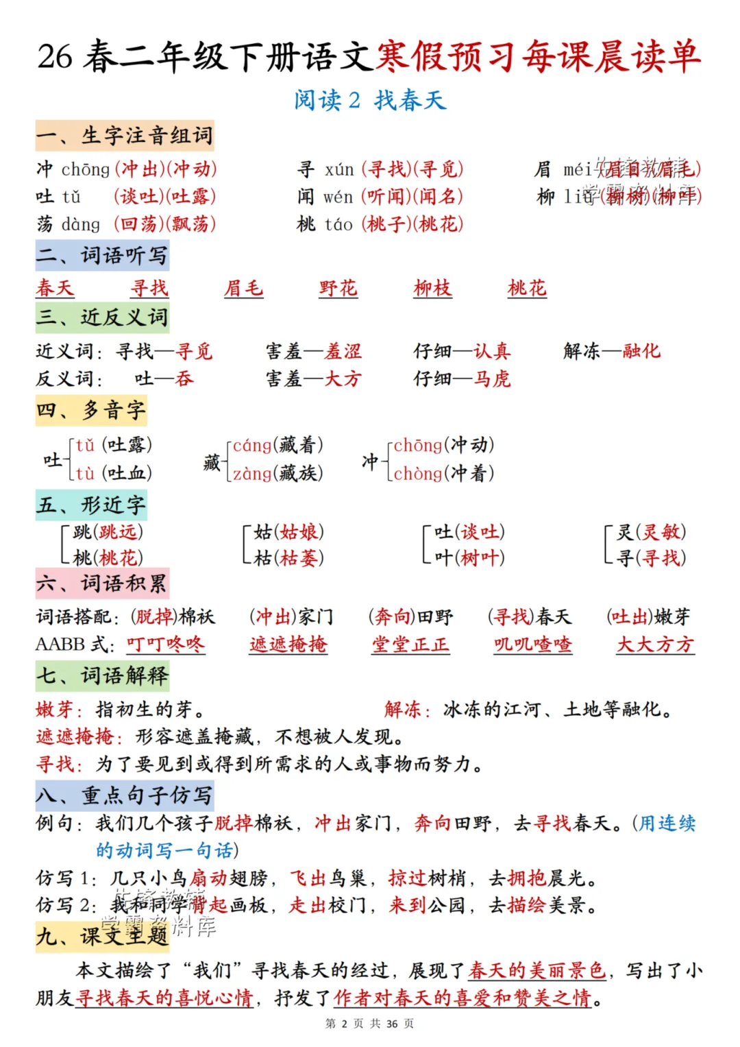 26春《二年级下册语文每课晨读单》电子PDF文档共36页,公益分享,即拿即用,可直接打印。