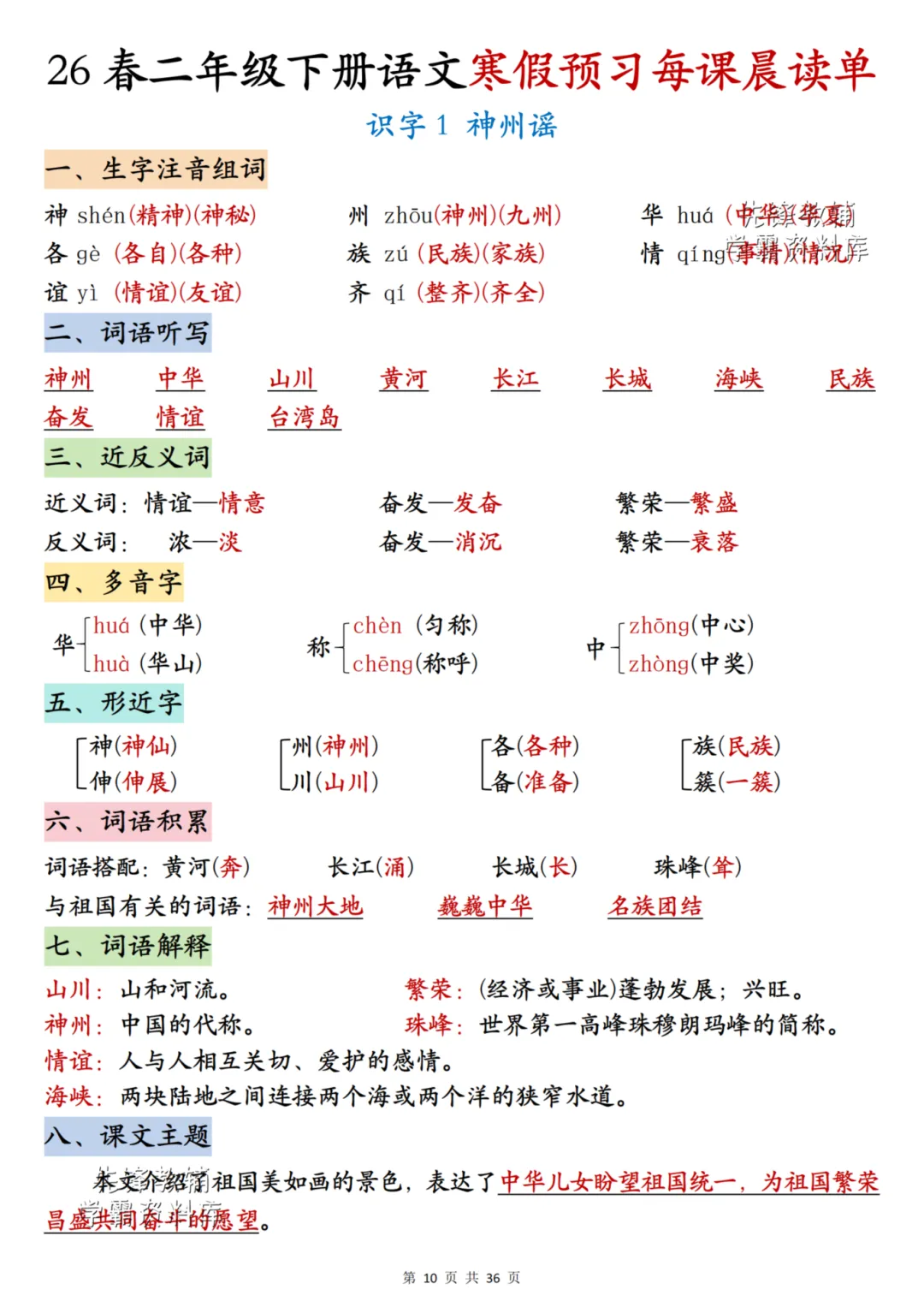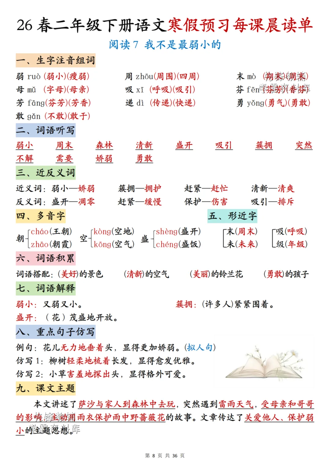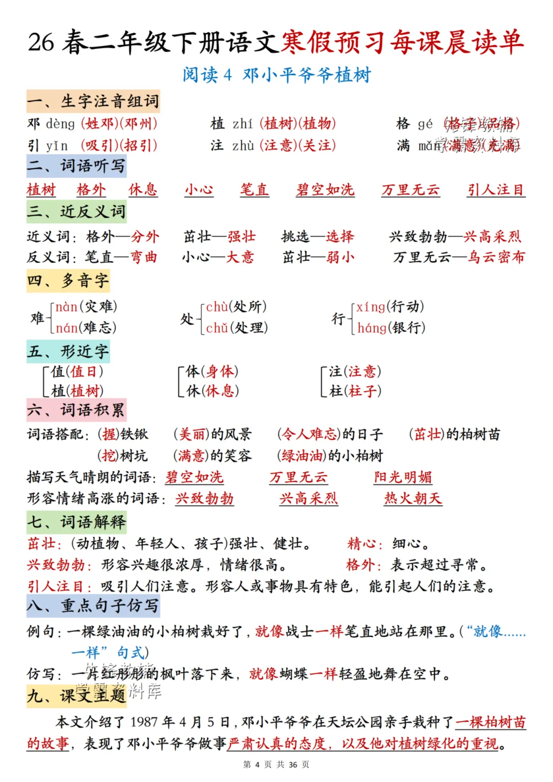 26春《二年级下册语文每课晨读单》电子PDF文档共36页,公益分享,即拿即用,可直接打印。
