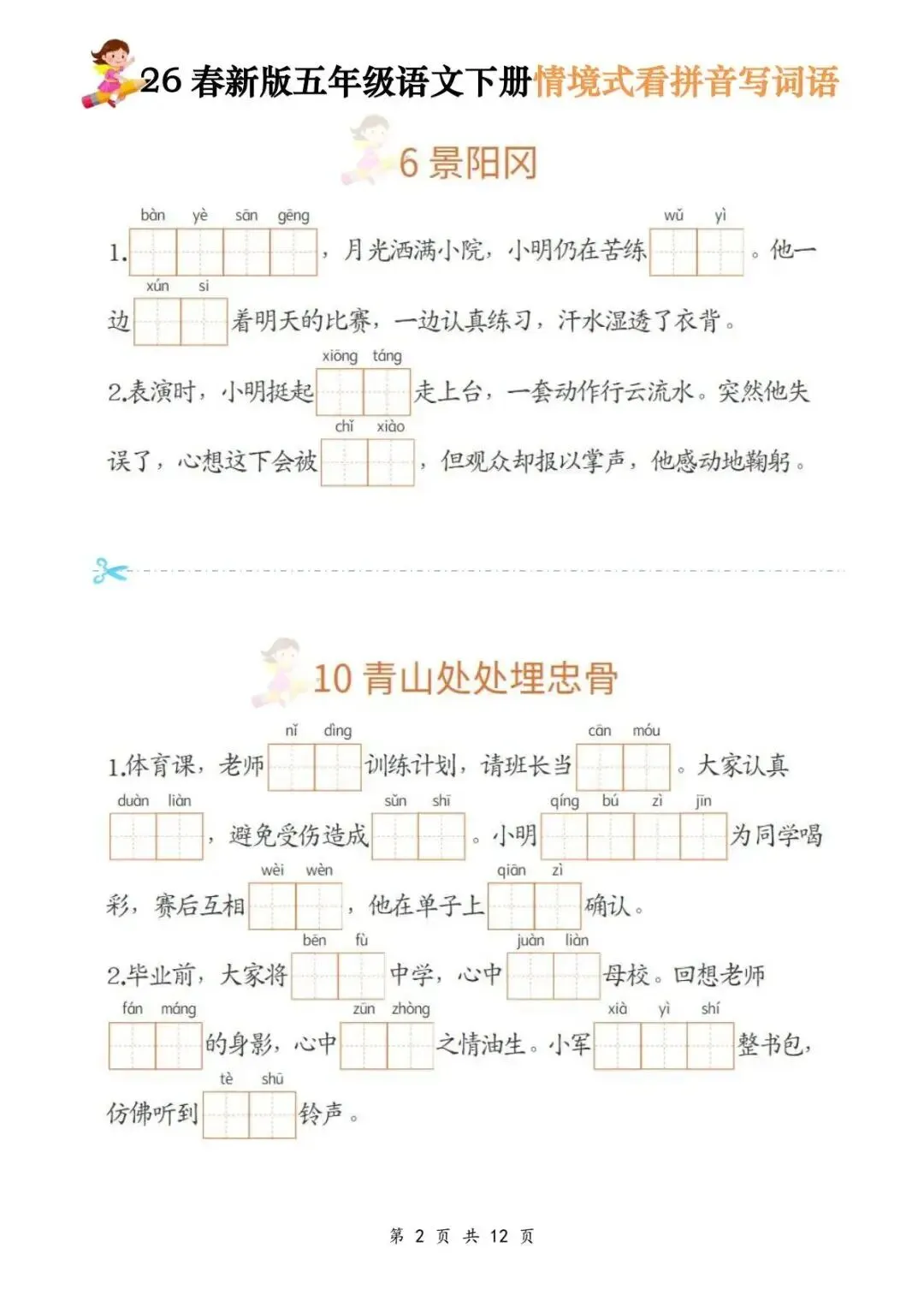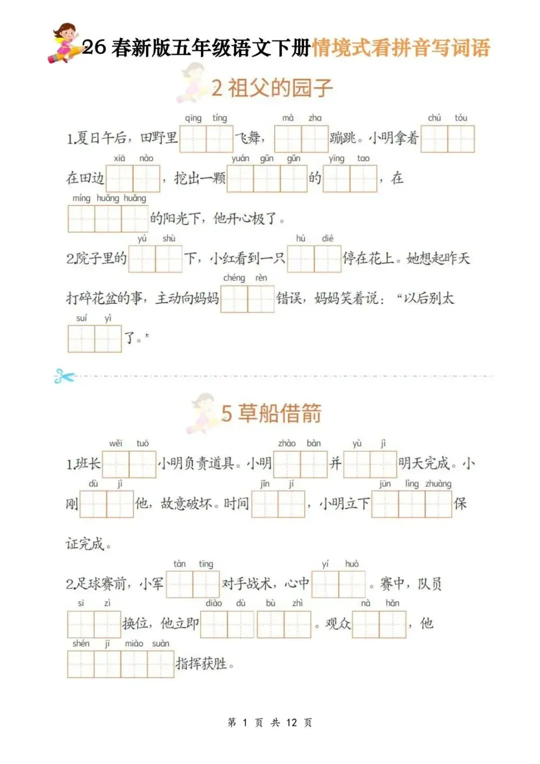 【免费下载】2026春五年级语文下册《全册情境式看拼音写词语》含答案 | PDF高清电子版可打印