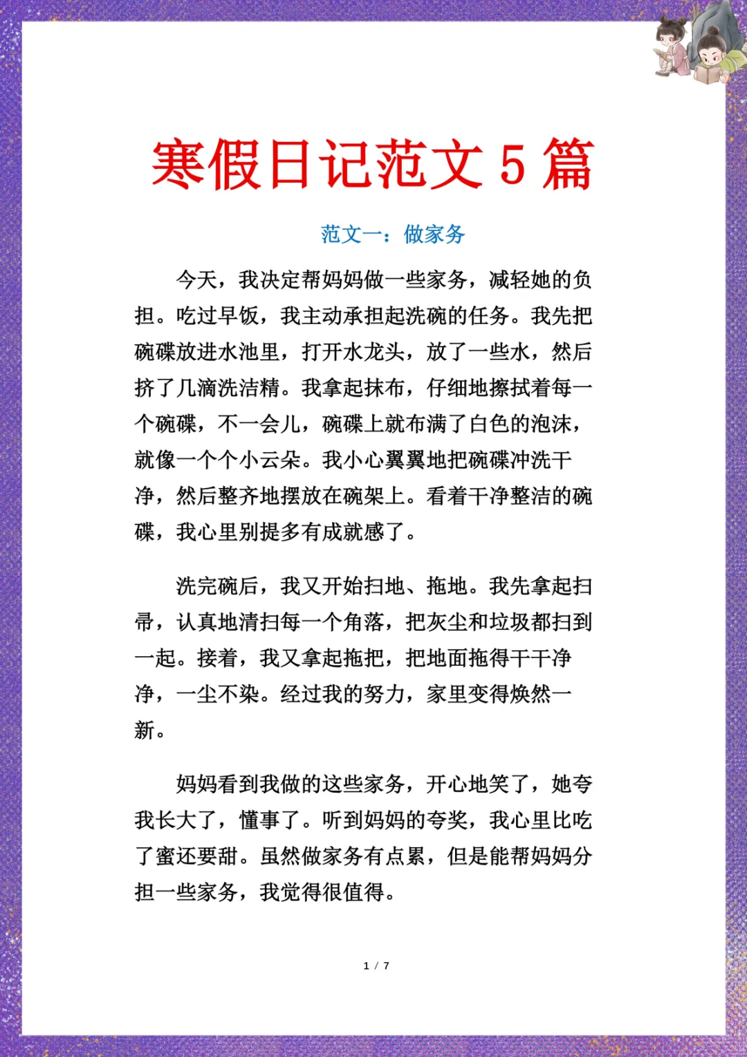 小学生寒假日记范文5篇 电子版可下载打印