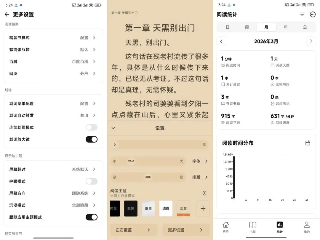Reeden 是一款功能强大的纯本地电子书阅读器,支持 TXT、EPUB、MOBI、AZW、AZW3、PDF 等多种主流格式,致力于为用户提供丰富、个性化的阅读体验。它支持全平台数据同步,可通过 WebDAV、S3 及 iCloud 协议实现云存储对接,让阅读进度在不同设备间无缝衔接。用户可设定每日阅读目标,激发阅读动力,并通过多维度的阅读数据指标,深入了解自身阅读习惯。此外,Reeden 还集成 AI 助手、笔记记录、完全自定义排版、听书等实用功能,更多细节等待您亲自探索。