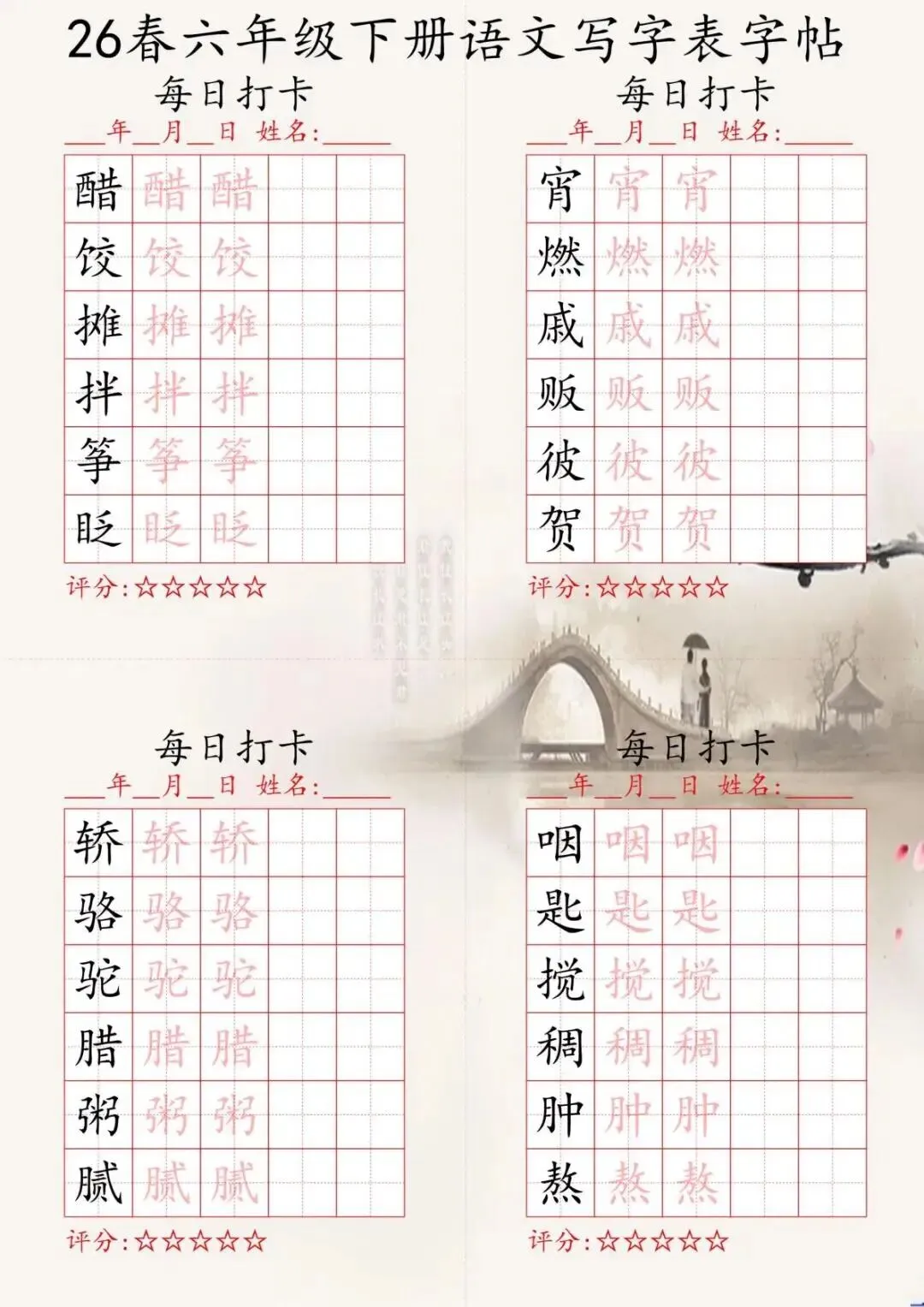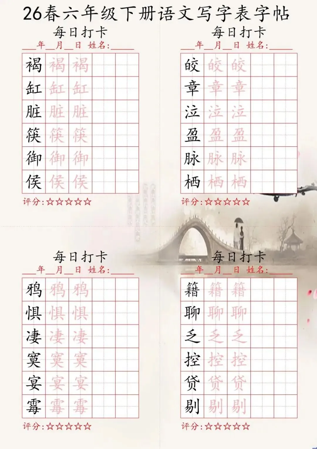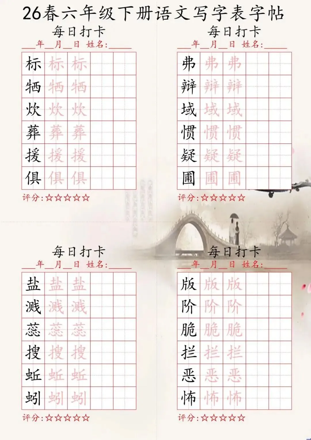 【免费下载】26春六年级下册语文练字帖,每日打卡规范书写 | PDF高清电子版可打印