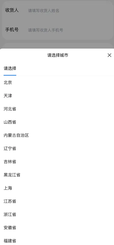 <script>export default {data() {return {// 地址输入框显示文本areaText: '',// 选择器显示状态openPicker: true,// 省市区树形数据areaList: [],// 表单数据formData: {areas: [],province: '',city: '',area: '',province_code: '',city_code: '',area_code: ''}}},onLoad() {// 页面加载时请求省市区数据this.getAreaList();},methods: {/*** 请求省市区树形数据*/getAreaList() {api.area.treeList().then(res => {this.areaList = res.data})},/*** 点击地址项打开选择器*/selectArea() {this.$refs.areaPicker.show();},/*** 选择器值改变事件* @param {Object} e - 事件对象*/onchange(e) {const value = e.detail.value;// 存储省市区名称和编码this.formData.province = value[0].text;this.formData.city = value[1].text;this.formData.area = value[2].text;this.formData.province_code = value[0].value;this.formData.city_code = value[1].value;this.formData.area_code = value[2].value;// 回显到输入框this.areaText = `${value[0].text}/${value[1].text}/${value[2].text}`;}}}</script>