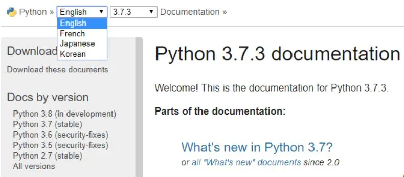 最近很多开发者发现 Python现在已经有官方中文文档了,但直接从 Python 文档界面并看不到。如下在 Python 文档中,只有英语、法语、日语和韩语可选,我们并看不到中文选项。