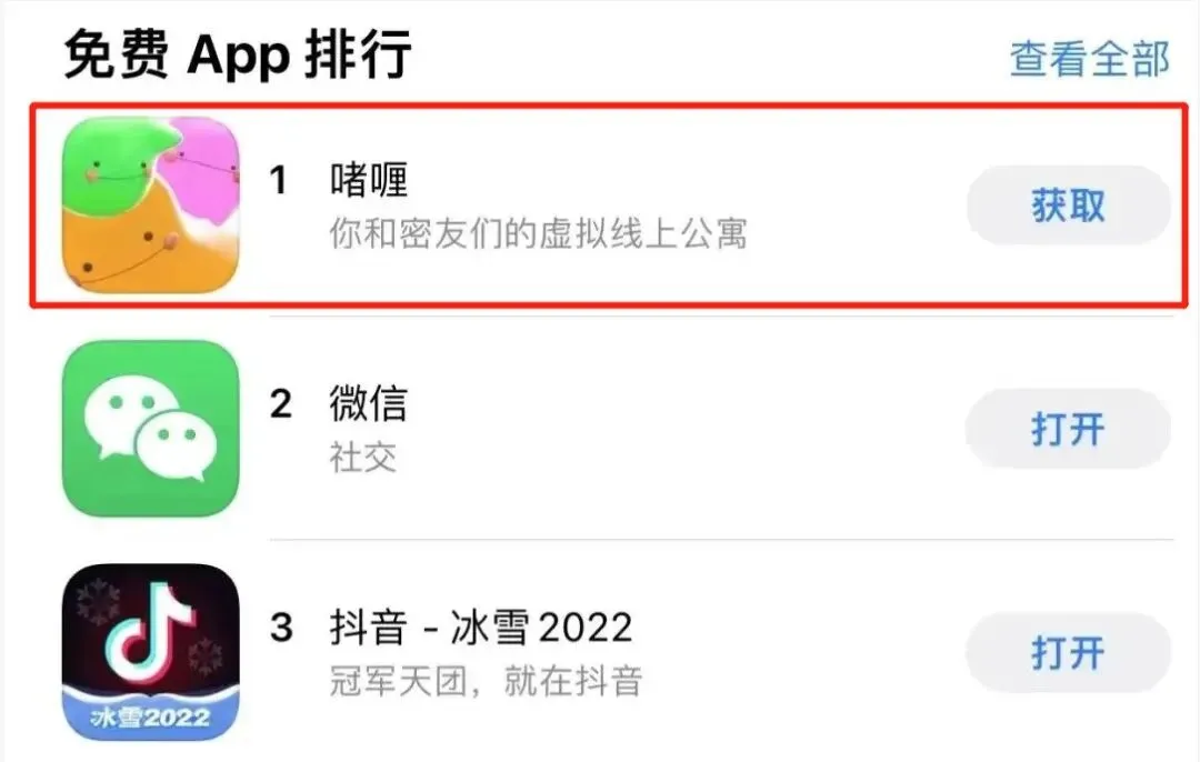 2月11日,啫喱正式上线还不到一个月时间,排名就超过微信、QQ,登顶AppStore免费榜。