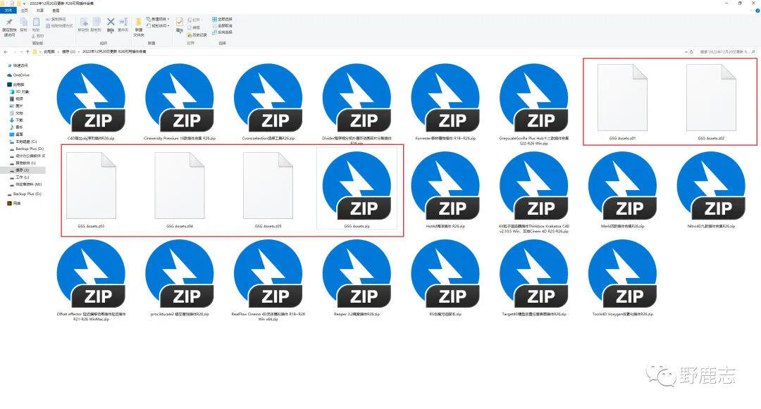 只有灰猩猩插件套装还不行,当然得搭配这套资产合集了,这次分享的插件合集体积这么大主要也是因为有这套资产,这套资产就有80多个G,所以压缩的时候我是分卷压缩的: