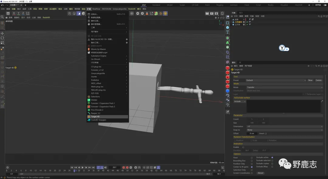 Target4D这个插件我只会最简单的把对象放置在模型表面这个功能,其他功能待研究,还是挺好用的: