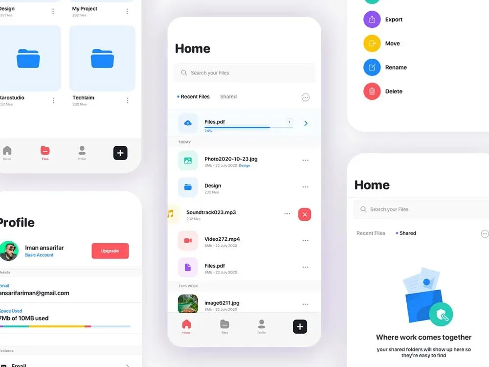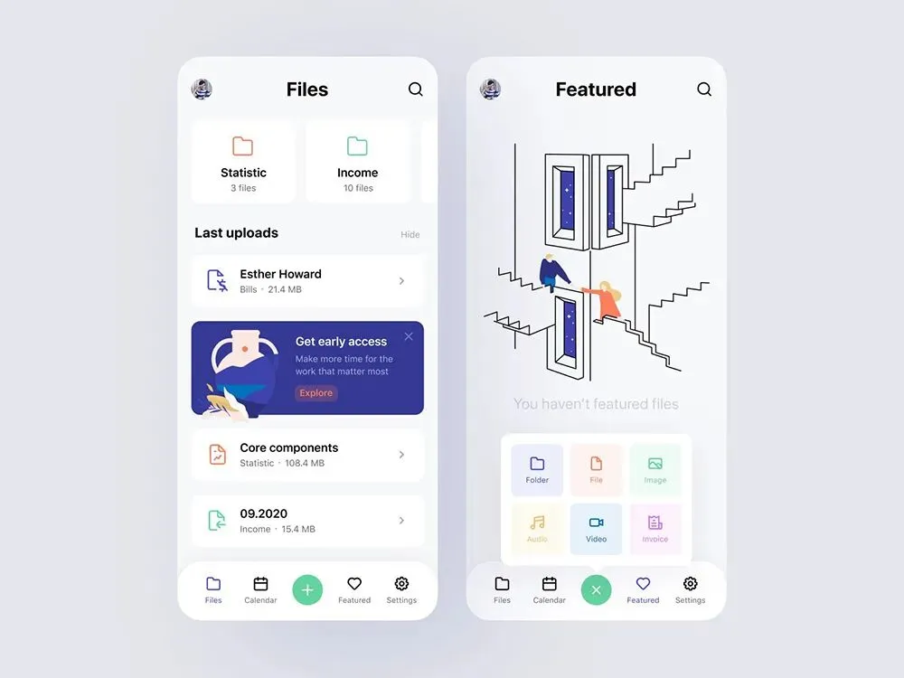 文件管理 App 可以帮助我们管理自己的文件,分类管理,快速查找,精选 12 组文件管理 App 界面,虽然风格各异但都具有代表性,无论是版式排布还是颜色搭配都值得参考。