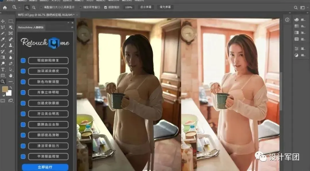 用传统的商业修图技法,你花1~2小时,用这个款插件也许只要3分钟搞定。