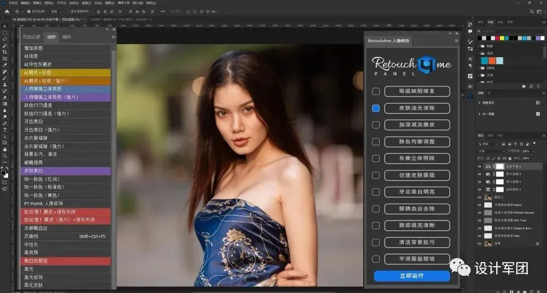 人像精修 、肤色暗沉、长痘长皱、中性灰磨皮这些通通都可以一键搞定。