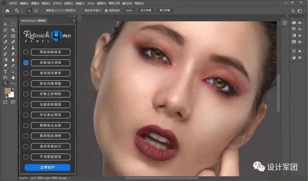 全新UI界面,插件跟稳定,功能简单一键出效果!括去除瑕疵、光滑皮肤、对面部各个部位和细节进行精修、进行梦幻调色等。