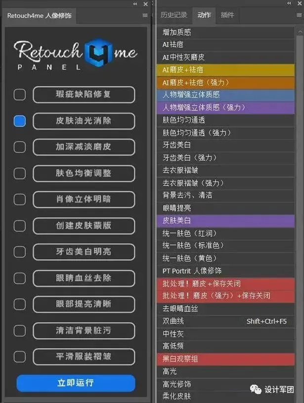 其中 Portraiture 刚刚升级,最新版是4.1.2版,功能更强大,新旧版本的PS都可以一键安装使用。