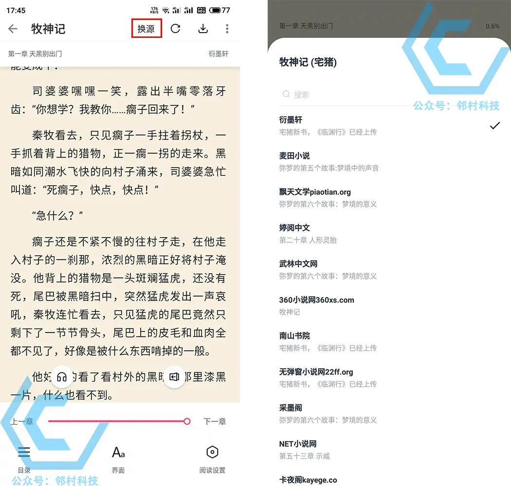 并且我们同样可以在最上方点击换源,进而查看其它的阅读源。
