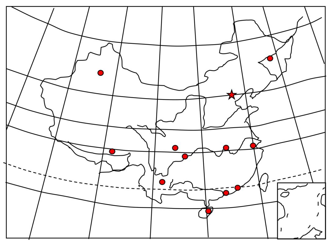 十.填绘以下分界线(季风区与非季风区、三级阶梯分界、400mm等降水量线、800mm等降水线)