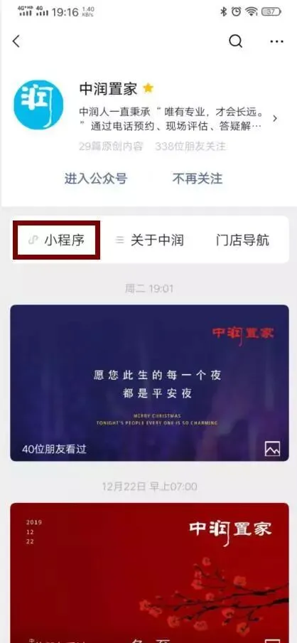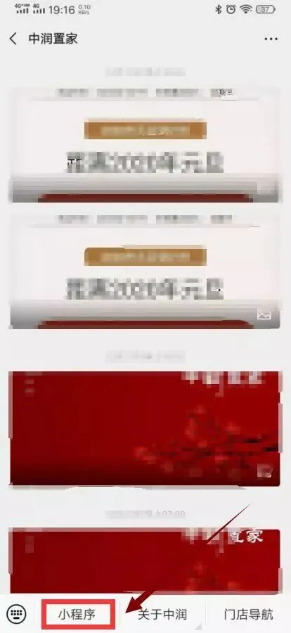 打开【中润置家】公众号,点击下方【小程序】直接进入。