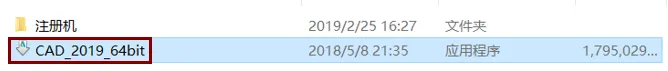 2. 打开解压后的文件夹,双击“CAD_2019_64bit”。