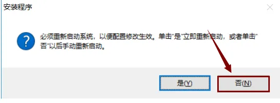 8. 点击“完成”。若弹出重启系统对话框,选择“否”。
