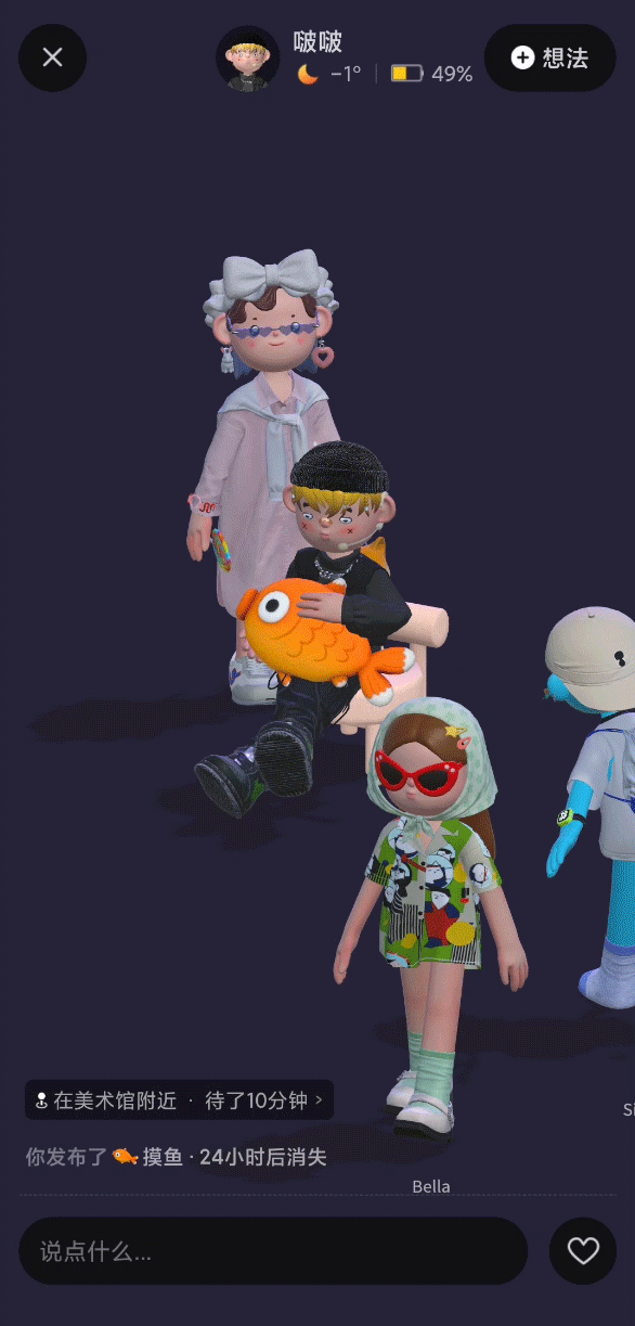 刚进入啫喱的他们新鲜感十足,赴约之前,就开始在啫喱上互相同步动态和计划,也会根据实际情况更换自己的动态,睡觉、刷剧、打游戏、搬砖,一看虚拟形象,就能看到每个人在做什么。过去交流的微信群被晾到了一边。