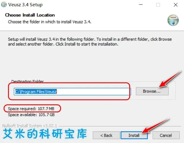 3.选择文件安装位置,可以看到这款软件体积非常小,仅需要107.7M的空间,然后点击“Install”进入安装;