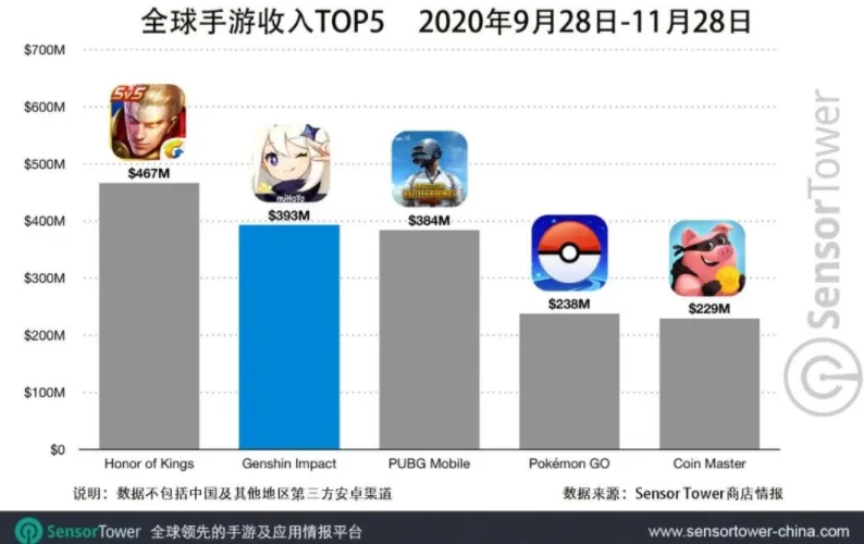 Google Play 也把年度最佳游戏这个非常具有分量的奖项颁给了《 原神 》,并且根据 Sensor Tower 的数据,《 原神 》今年可真是名利双收,已经位列全球移动游戏收入榜第二名。