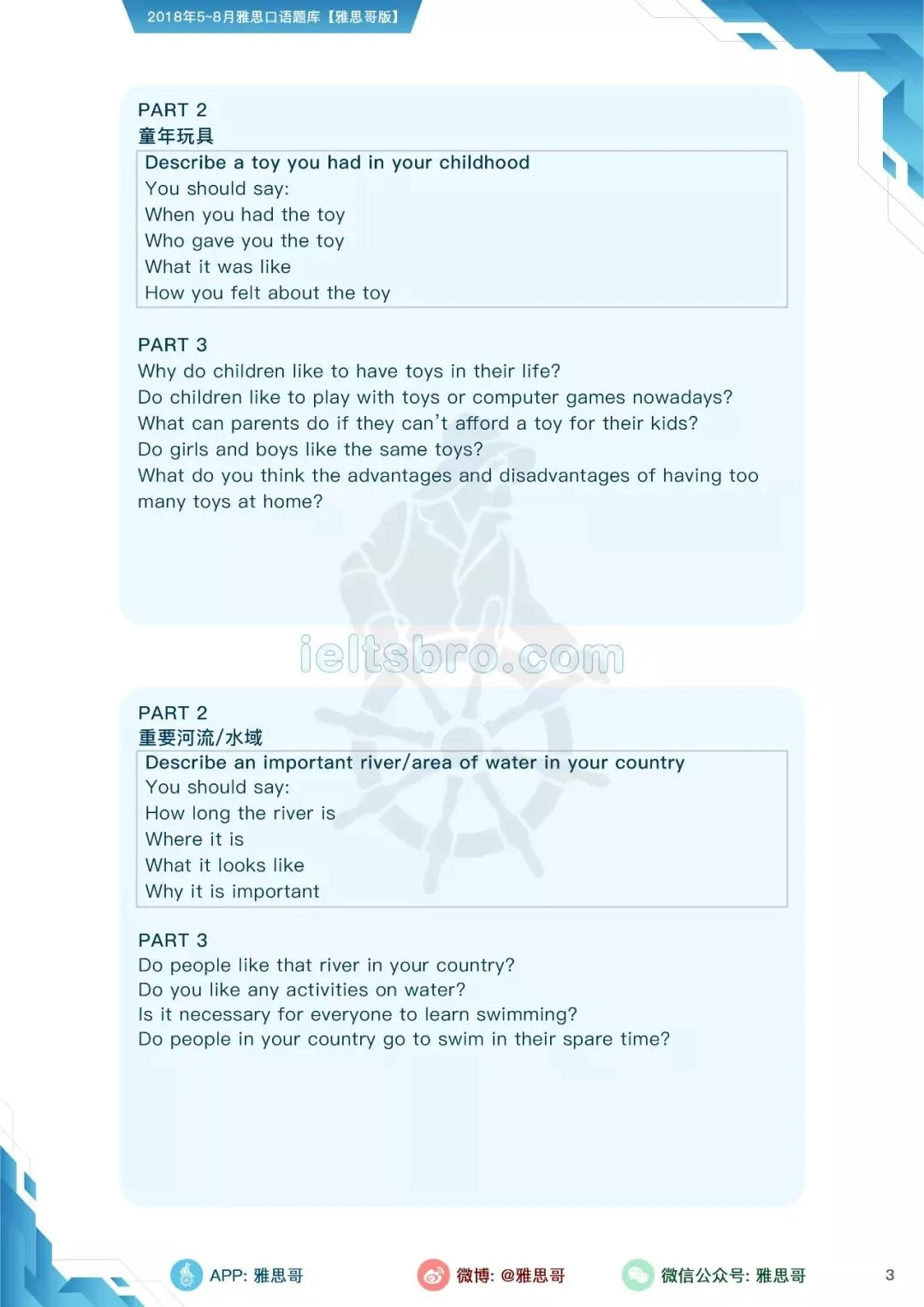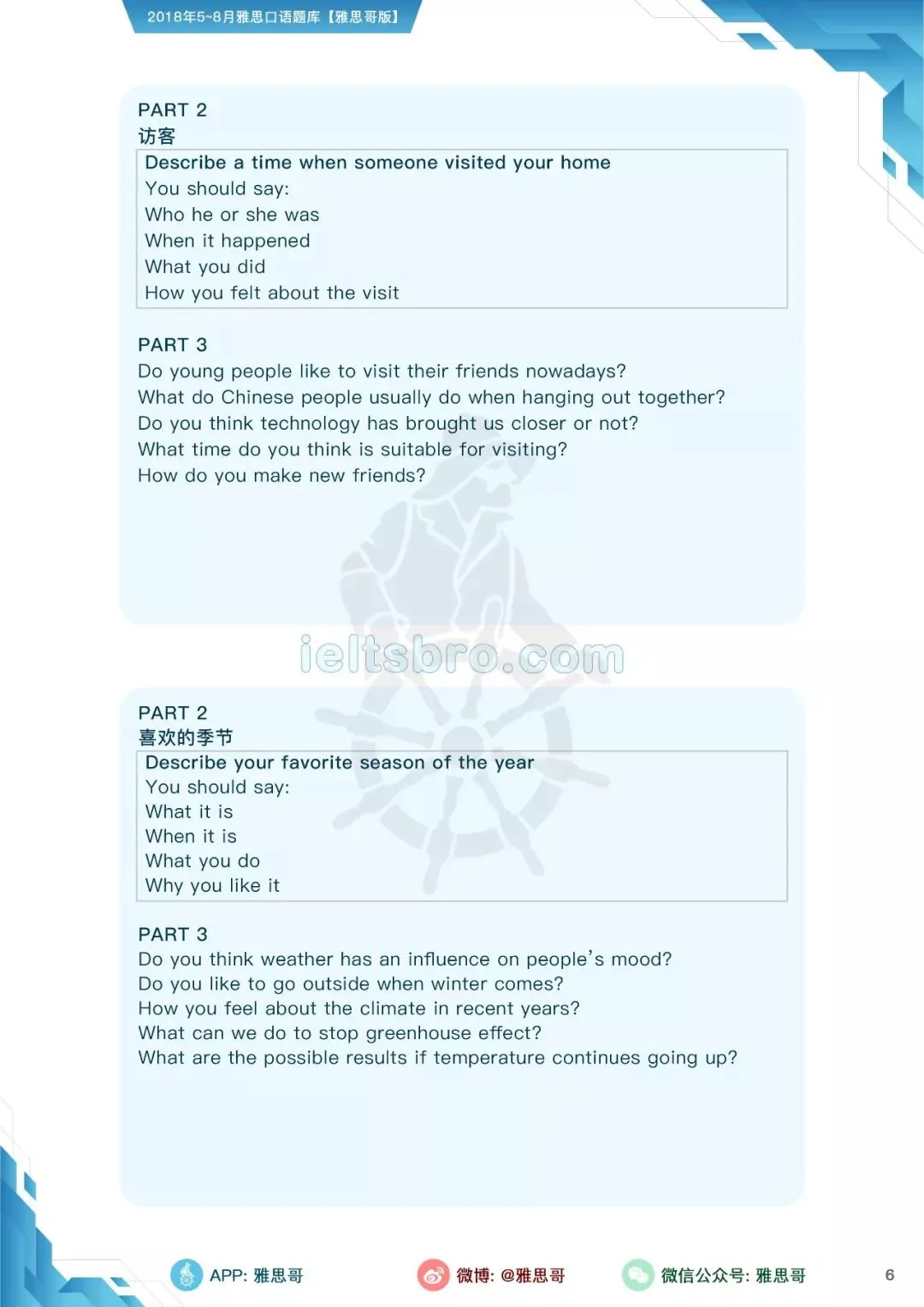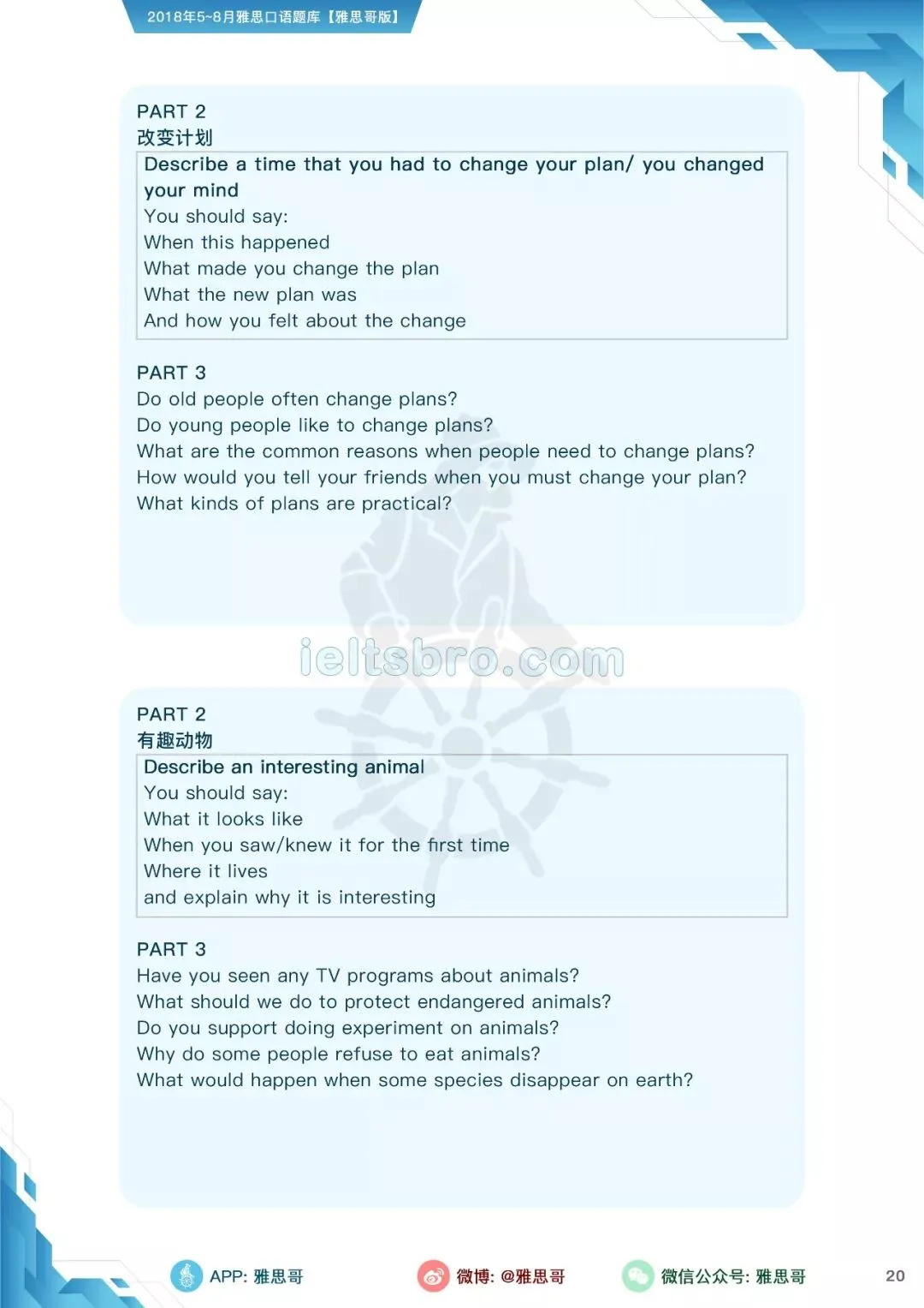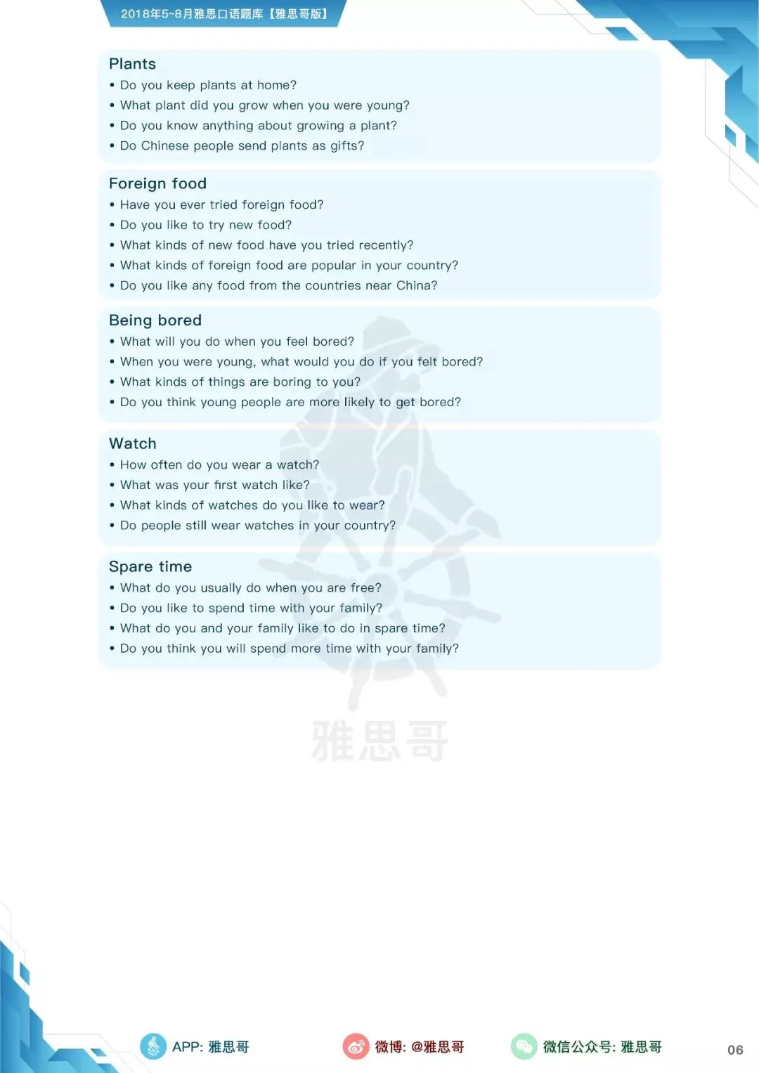 【独家】5-8月完整口语题卡发布!可打印PDF版!