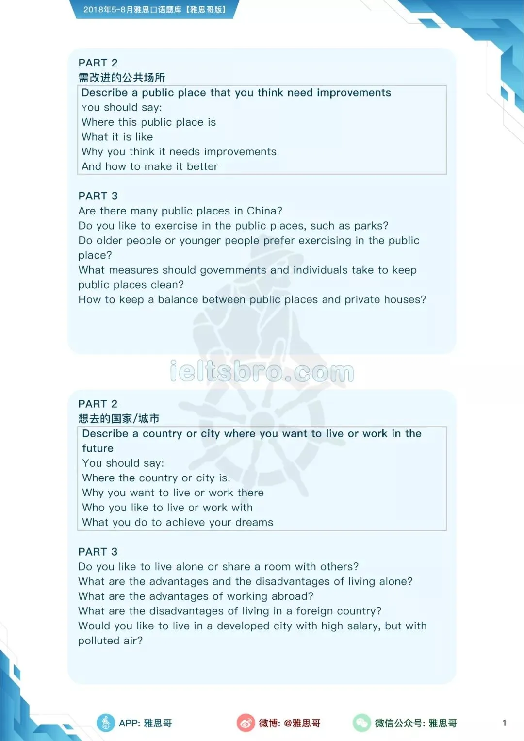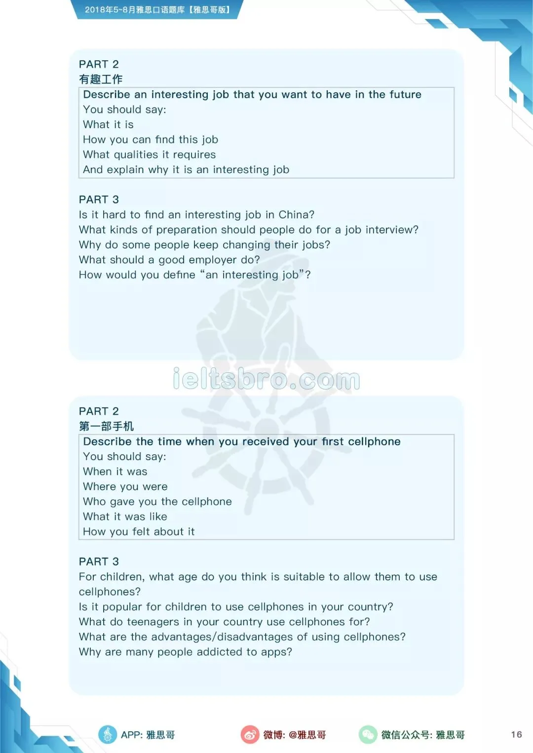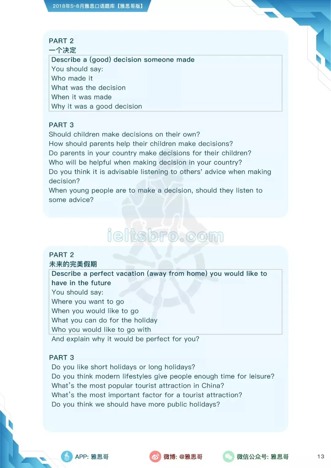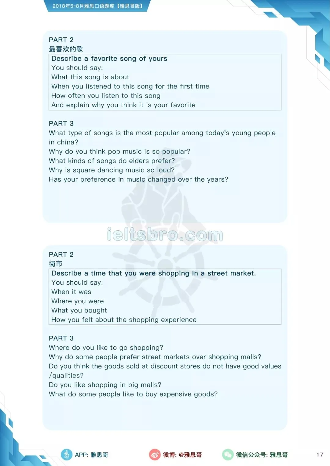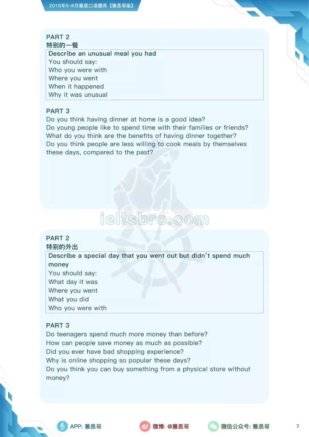【独家】5-8月完整口语题卡发布!可打印PDF版!