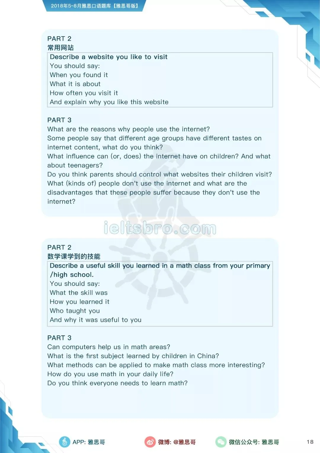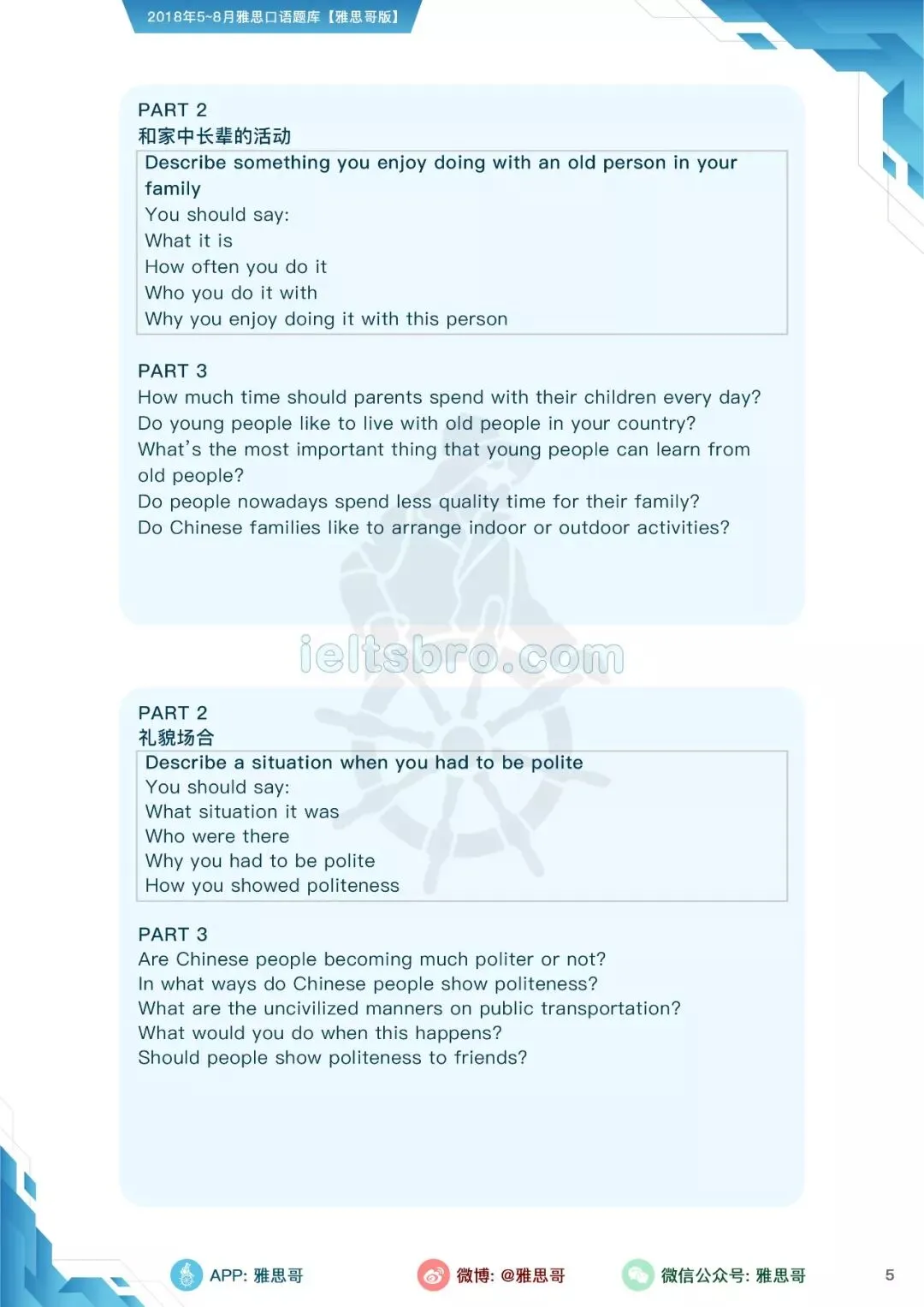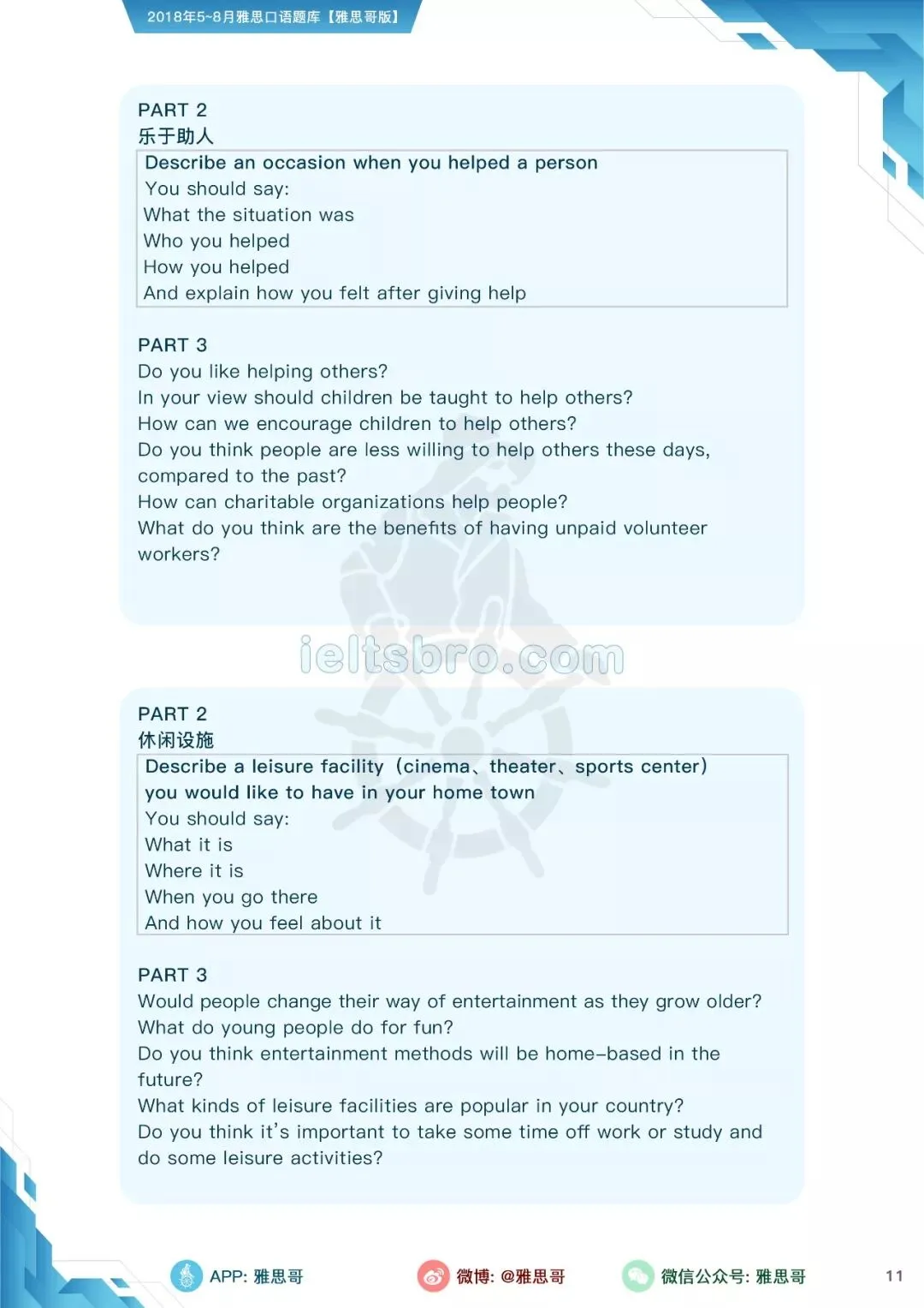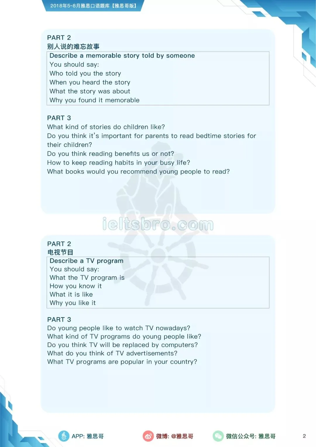 【独家】5-8月完整口语题卡发布!可打印PDF版!