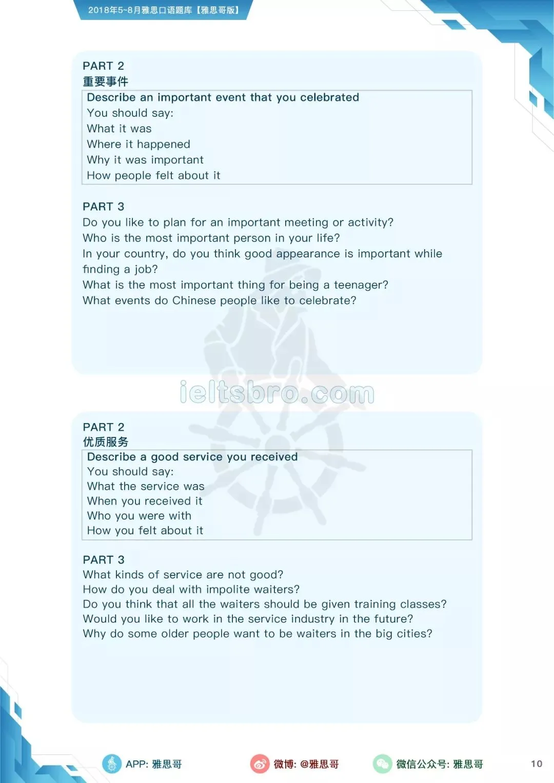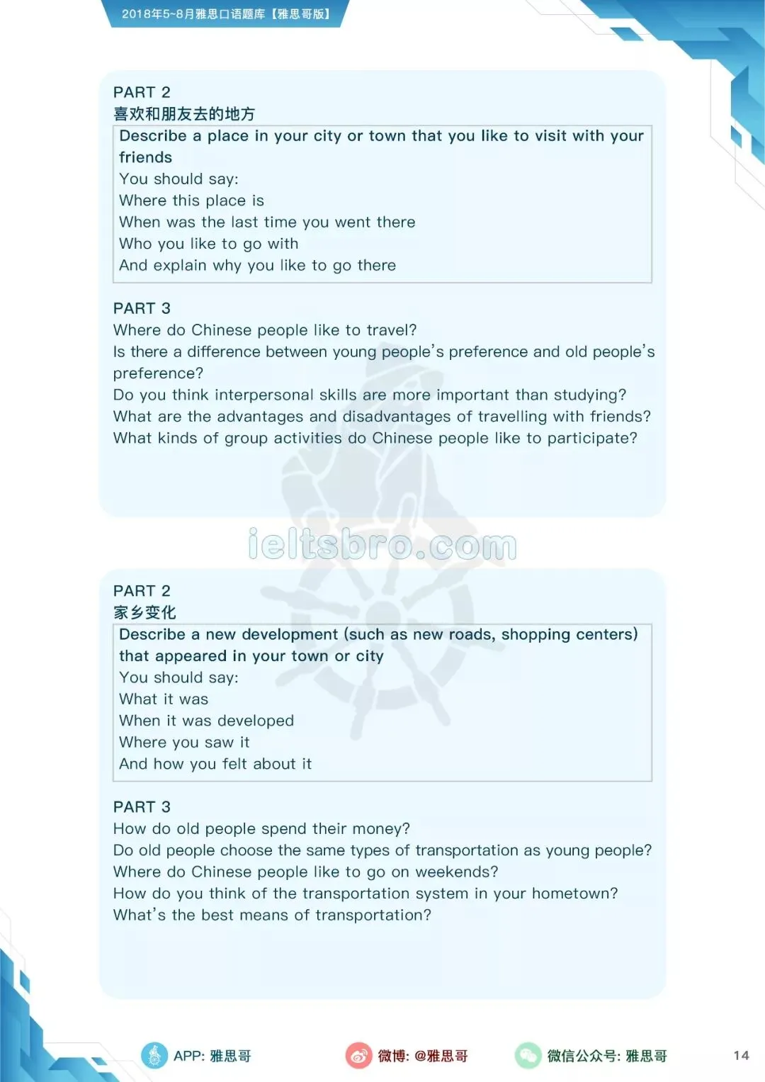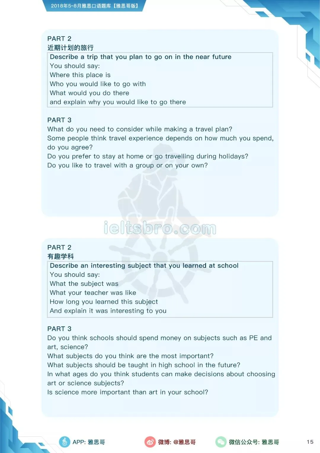 本季度全部口语话题已更新在雅思哥APP,大家赶紧练起来吧!