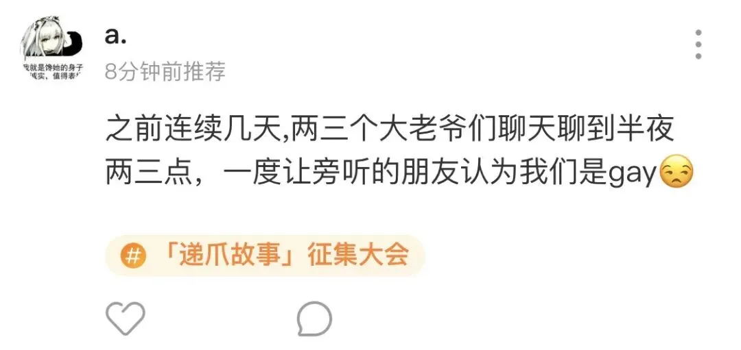 在递爪,将近一半的人会和同性打招呼聊天,或者邀请同性一起参加一个聊天局。