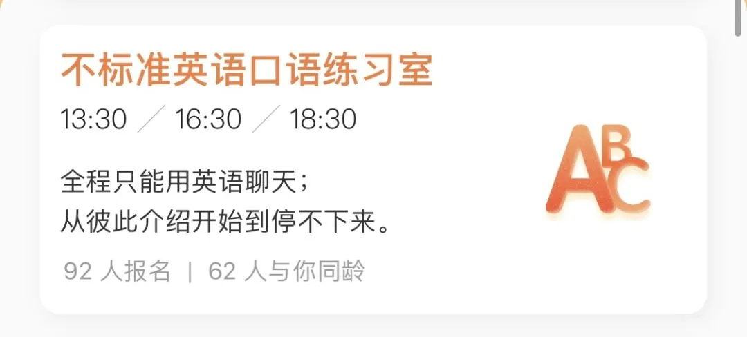 每局一个全新的头像和昵称,感觉自己被保护得好好的,可以没有思想包袱地说一些平时压在心里的话,参加英语局什么的,也完全不用担心自己说错尴尬。(说错了也没人笑话我,真的太感谢大家了)