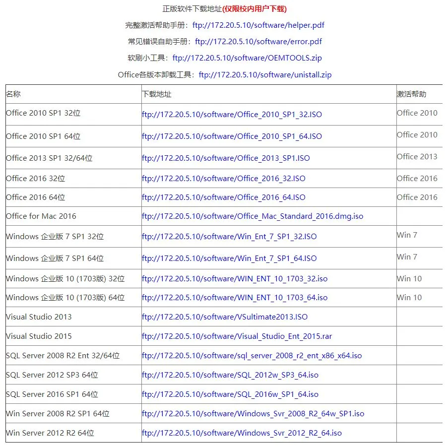 下载并激活包括office、SQL Server、Windows、Visual Studio在内的众多软件。