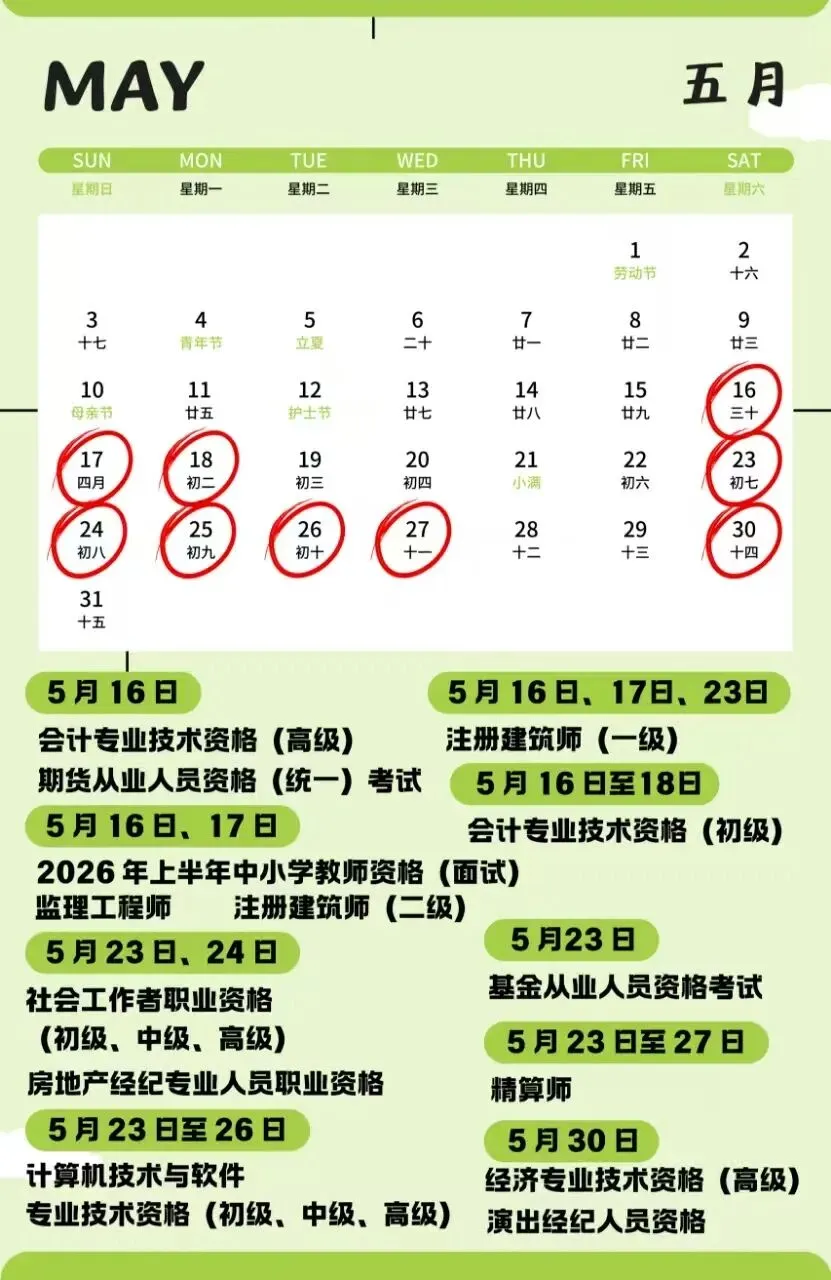 速存!2026年超全考证日历