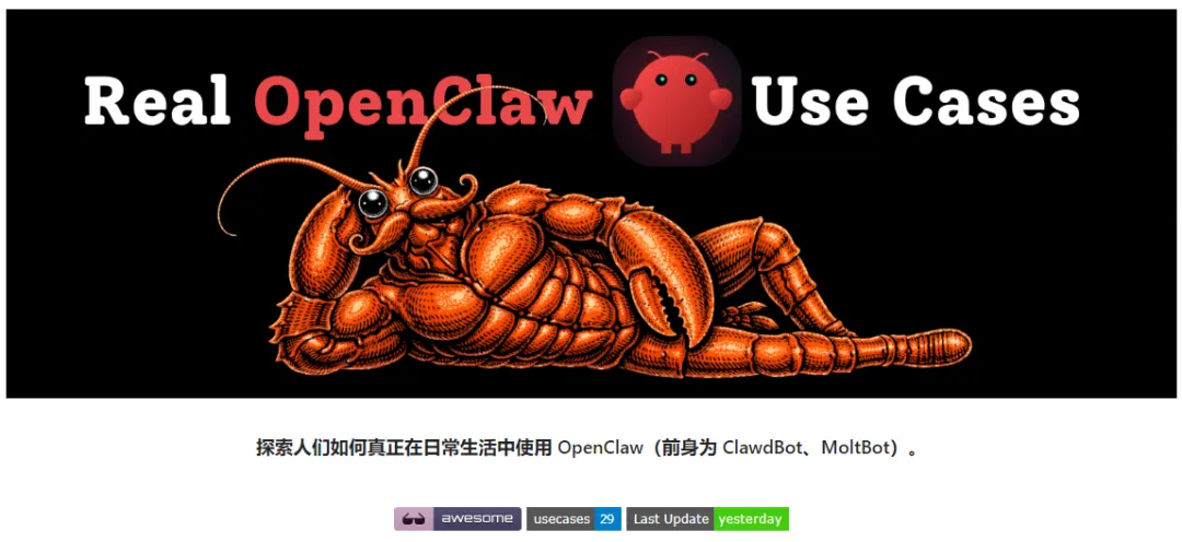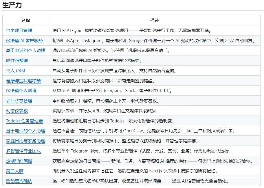 也正因如此,GitHub 上一个专门收集 OpenClaw 真实使用案例的仓库应运而生,30 + 经过验证的落地场景,从根本上解决了 “OpenClaw 该怎么用” 的核心问题。
