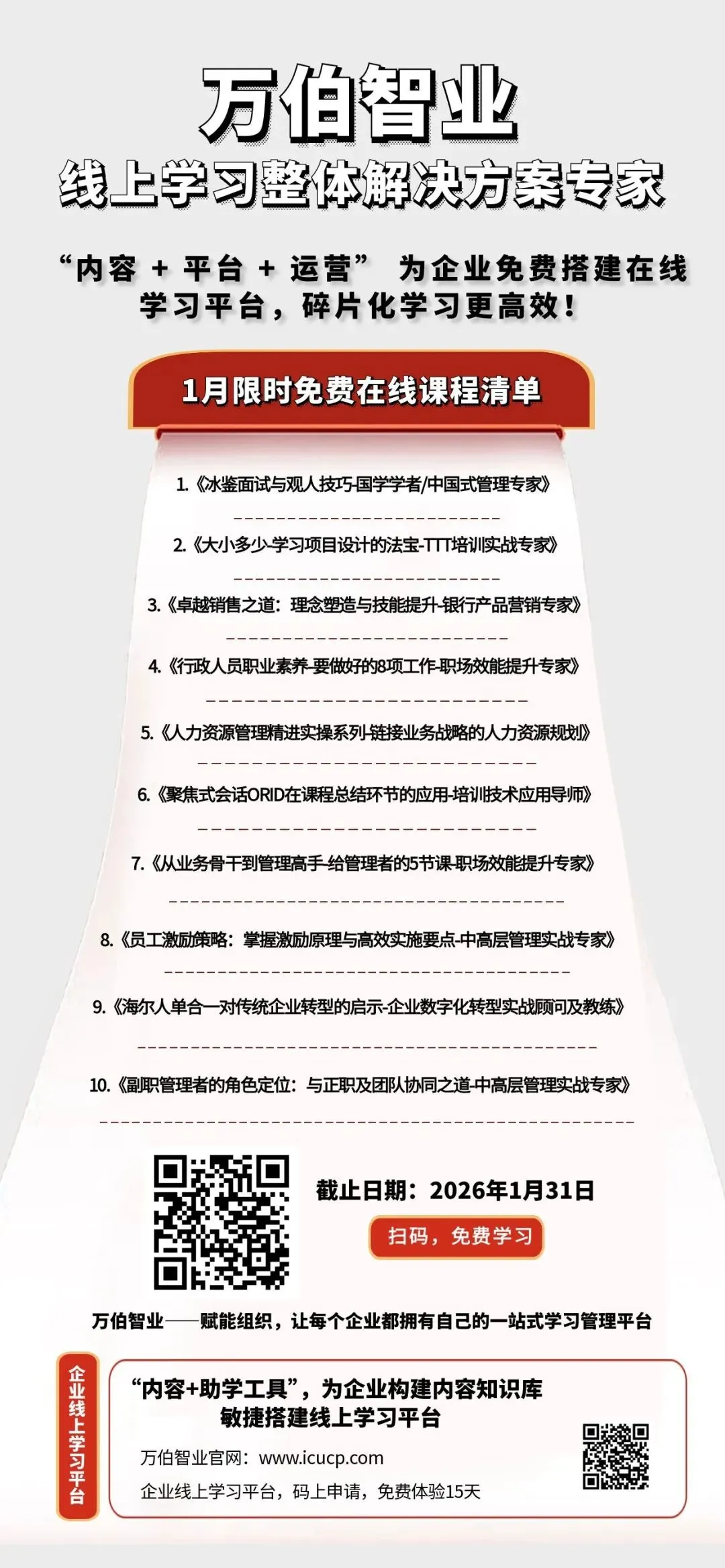 万伯智业-数智化组织管理与发展专家,为企业提供“测评+培训+咨询+顾问+IT”一体化人才管理数字化转型解决方案。服务涵盖人才测评、人才盘点、招聘管理、组织诊断、组织管理、人才培育、360度评估、薪酬绩效管理、人才梯队、员工管理、企业内训、企业管理咨询、招聘选拔外包、培训外包等。