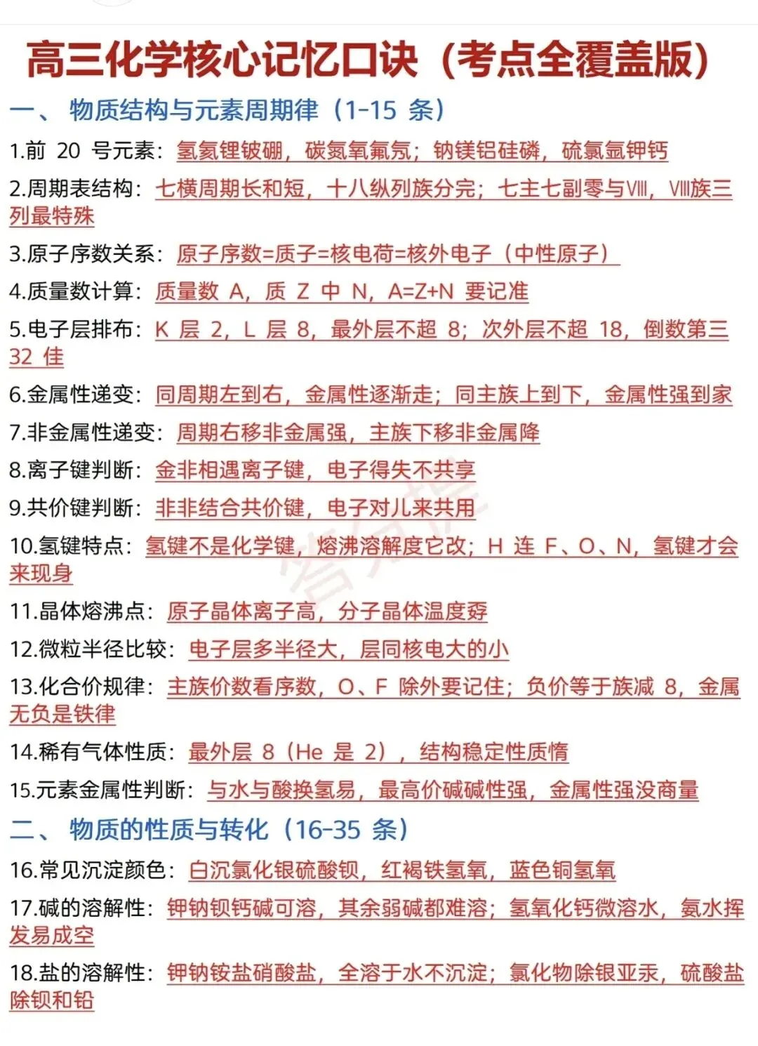 高三化学核心记忆口诀(考点全覆盖pdf版)下载