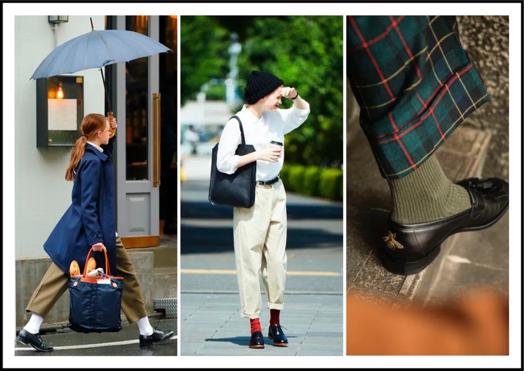 萝卜裤修饰自身腿形,长度在七分到九分之间,搭配牛津鞋,露出袜子,学院派气质拉满。