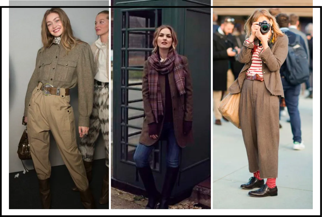 是不是已经发现打造英伦风的一些规律了呢?其中有一些共通点:英气十足,虽然每一件单品都是女性服饰,但是组合到一起,就会让整个人更潇洒自如,融入了果敢、干练的特质。
