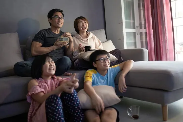 夏天的幸福当然是一家人围在边吃西瓜边看电视呀!